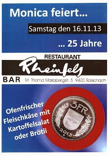 Rorschach hat eines seiner grössten Beizenfeste in diesem Jahr erlebt. Moni Thoma feierte am letzten Samstag im Rheinfels ihr 25jähriges Wirtejubiläum. Es versteht sich fast von selbst, dass an diesem Abend kein Stein auf dem anderen blieb. Moni Thoma möchte sich auf diesem Weg bei allen Gästen recht herzlich bedanken. Sie fand bei diesem Andrang nicht die Möglichkeit, sicher persönlich um alle Gäste zu kümmern. Sie lässt sich gerne so zitieren: „Es war ein affengeiler Abend“. Dem ist es eigentlich nichts hinzuzufügen. Ausser: The Show must go on. Wo? Natürlich im Rheinfels …