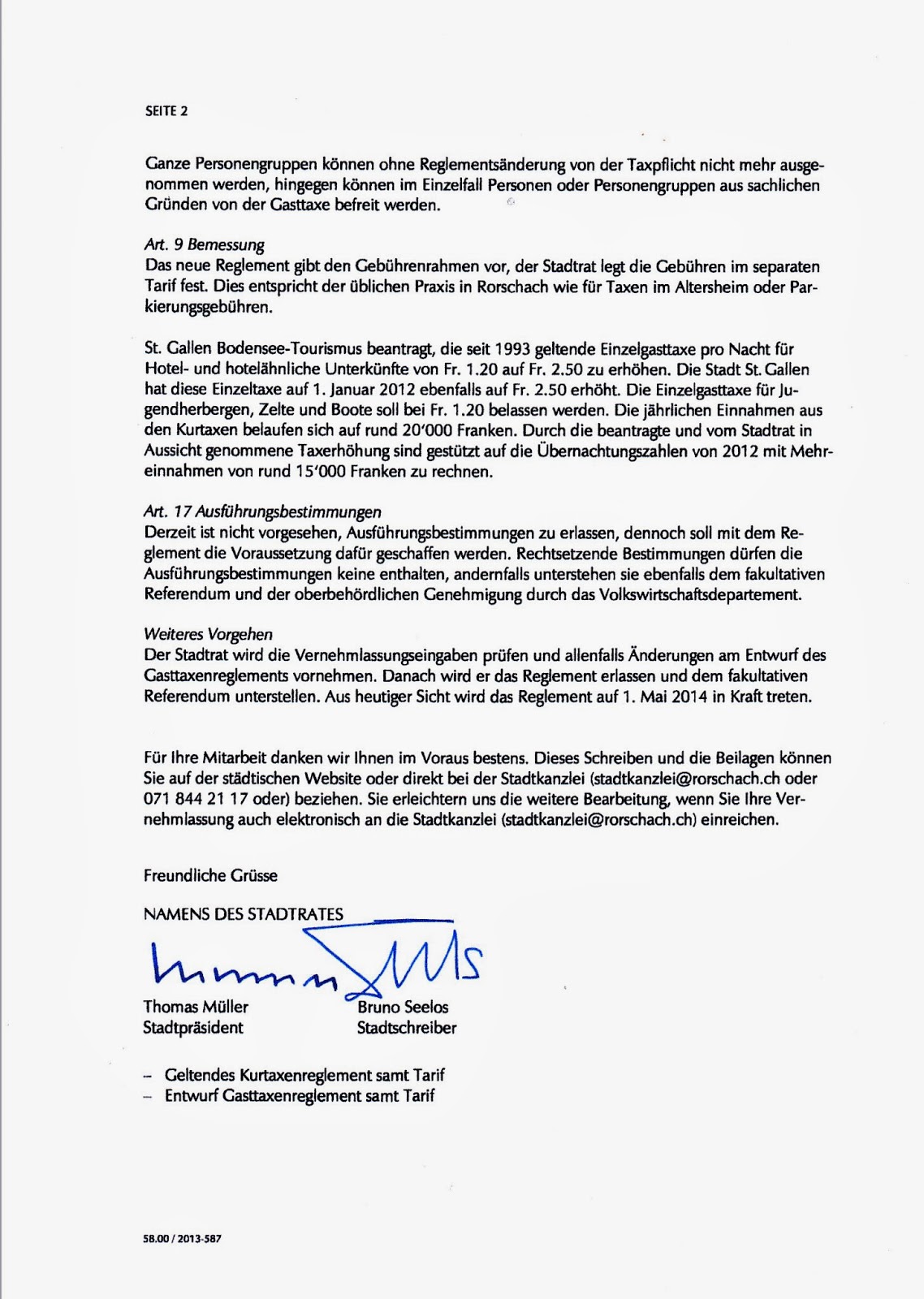 Vernehmlassung für neues Gastaxenreglement 10. Januar 2014 - 13:14Interessierte Kreise haben bis am 31. Januar 2014 Zeit, sich zu äussern. Das neue Reglement findet man hier.Teilen mit: Einen Link per E-Mail an einen Freund senden (Wird in neuem Fenster geöffnet) E-Mail Drucken (Wird in neuem Fenster geöffnet) Drucken Auf Facebook teilen (Wird in neuem Fenster geöffnet) Facebook Auf X teilen (Wird in neuem Fenster geöffnet) X Auf WhatsApp teilen (Wird in neuem Fenster geöffnet) WhatsApp Gefällt mir:Gefällt mir Wird geladen …Newsletter abonnieren Bitte dieses Feld leer lassenBitte wähle, ob Du über jeden neuen Beitrag sofort oder lieber jeden Morgen gegen 9 Uhr eine Zusammenfassung der neusten Beiträge erhalten möchtest.Liste(n) auswählen: Neues vom Echo (Zusammenfassung) Neues vom Echo (Sofortbenachrichtigung) Dieses Feld wird benötigt.Prüfen Sie Ihren Posteingang und den Spamordner, um Ihr Abonnement zu bestätigen.