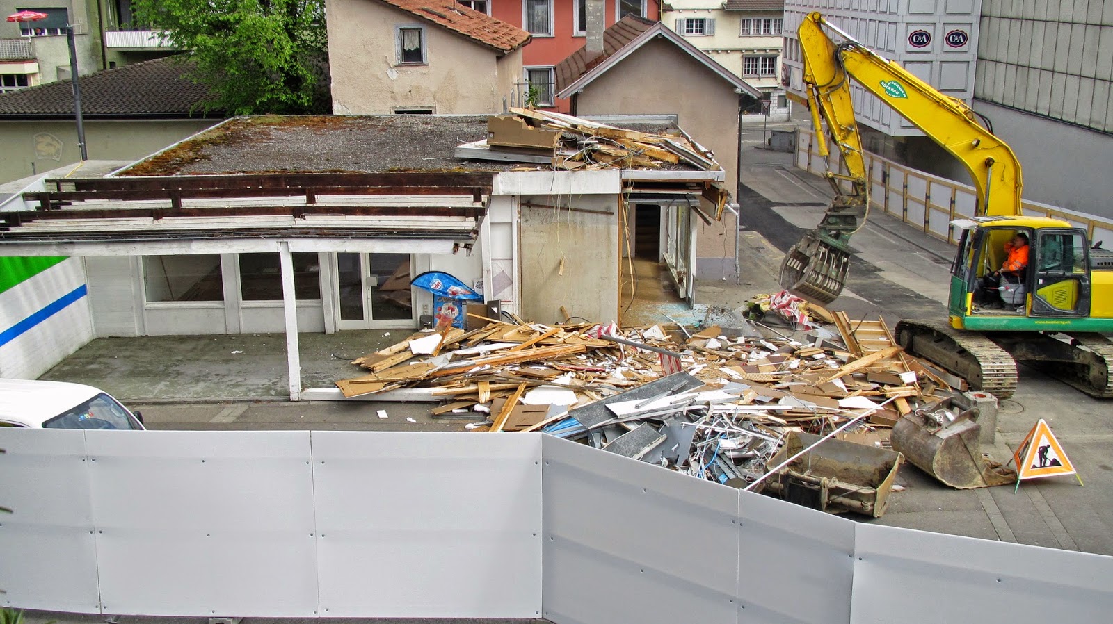 Abbrucharbeiten auf Trischliplatz laufen 22. April 2014 - 09:58Es geht los. Seit heute Vormittag sind die Abbrucharbeiten für den geplanten Neubau von Mode Weber im Gang. Die Bilder wurden mir von Berni zur Verfügung gestellt. Herzlichen Dank.Teilen mit: Einen Link per E-Mail an einen Freund senden (Wird in neuem Fenster geöffnet) E-Mail Drucken (Wird in neuem Fenster geöffnet) Drucken Auf Facebook teilen (Wird in neuem Fenster geöffnet) Facebook Auf X teilen (Wird in neuem Fenster geöffnet) X Auf WhatsApp teilen (Wird in neuem Fenster geöffnet) WhatsApp Gefällt mir:Gefällt mir Wird geladen …Newsletter abonnieren Bitte dieses Feld leer lassenBitte wähle, ob Du über jeden neuen Beitrag sofort oder lieber jeden Morgen gegen 9 Uhr eine Zusammenfassung der neusten Beiträge erhalten möchtest.Liste(n) auswählen: Neues vom Echo (Zusammenfassung) Neues vom Echo (Sofortbenachrichtigung) Dieses Feld wird benötigt.Prüfen Sie Ihren Posteingang und den Spamordner, um Ihr Abonnement zu bestätigen.