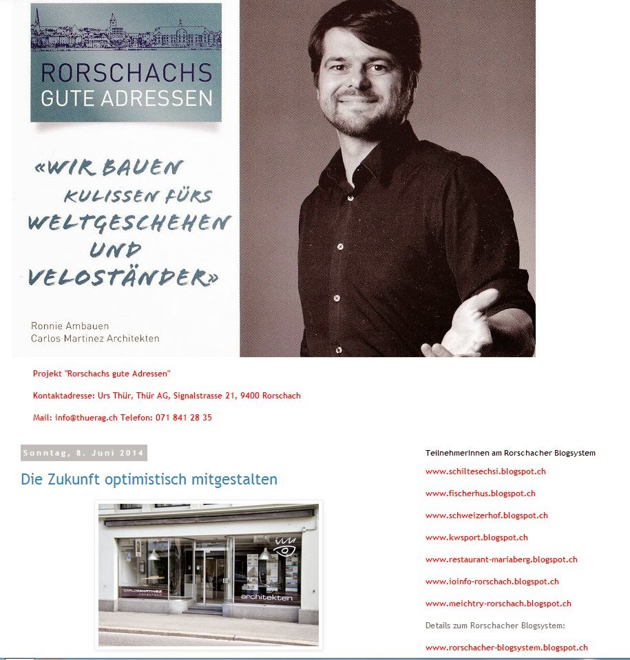Inegüxle, wa anderi mached … 11. Juni 2014 - 03:11Architekten verändern unsere Umgebung laufend. Details >> www.rorschachs-gute-adressen.blogspot.chTeilen mit: Einen Link per E-Mail an einen Freund senden (Wird in neuem Fenster geöffnet) E-Mail Drucken (Wird in neuem Fenster geöffnet) Drucken Auf Facebook teilen (Wird in neuem Fenster geöffnet) Facebook Auf X teilen (Wird in neuem Fenster geöffnet) X Auf WhatsApp teilen (Wird in neuem Fenster geöffnet) WhatsApp Gefällt mir:Gefällt mir Wird geladen …Newsletter abonnieren Bitte dieses Feld leer lassenBitte wähle, ob Du über jeden neuen Beitrag sofort oder lieber jeden Morgen gegen 9 Uhr eine Zusammenfassung der neusten Beiträge erhalten möchtest.Liste(n) auswählen: Neues vom Echo (Zusammenfassung) Neues vom Echo (Sofortbenachrichtigung) Dieses Feld wird benötigt.Prüfen Sie Ihren Posteingang und den Spamordner, um Ihr Abonnement zu bestätigen.