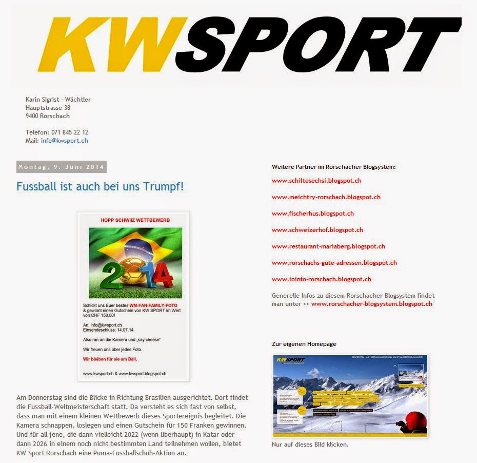 Fussball passiert nicht nur auch WM-Level, sondern die Faszination des runden Balls beginnt ganz früh und ganz unten an der Basis. Das Rorschacher Sportgeschäft KW Sport hat deshalb eine Fussballschuhe-Aktion im Angbeot. >> www.kwsport.blogspot.ch