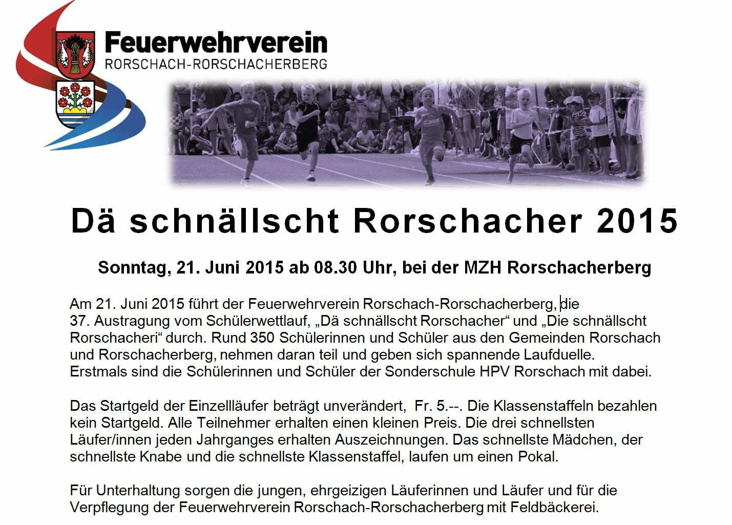So als Voranzeige: Am Sonntag, 21. Juni 2015, werden die Jungen der Region voll auf ihre Kosten kommen. Der Feuerwehrverein Rorschach-Rorschacherberg sucht wieder „Dä schnällscht Rorschacher“ und „Di schnällscht Rorschacheri“ und der FC Rorschach veranstaltet einen „Tag der Jugend“. Detailinfos folgen.