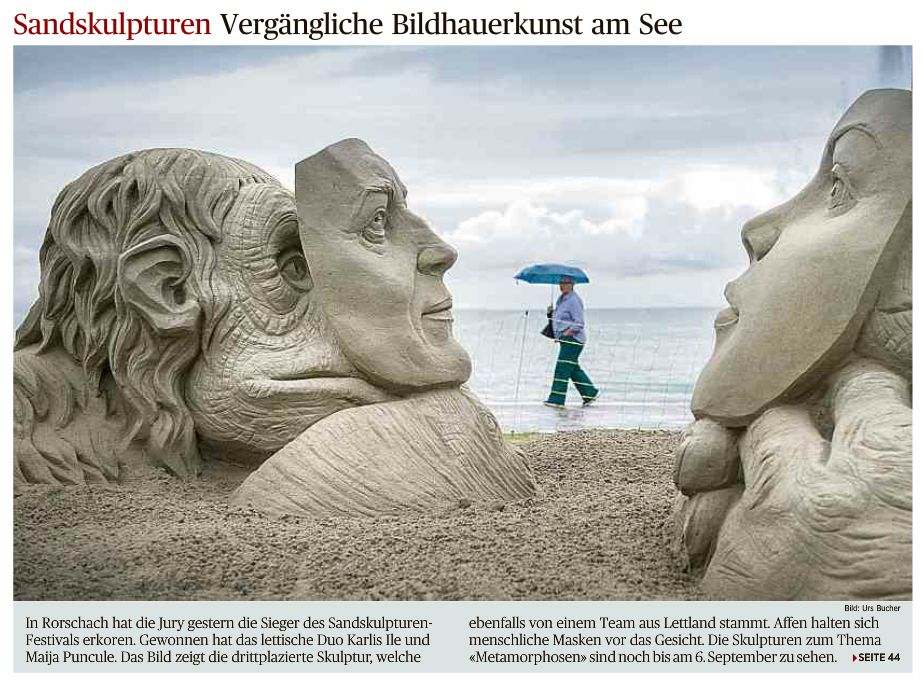 Gestern wurden die Sieger des diesjährigen Sandskulpturenfestivals auf der Rorschacher Arionwiese erkoren. Hier die Berichte in der heutigen Ostschweiz am Sonntag.
