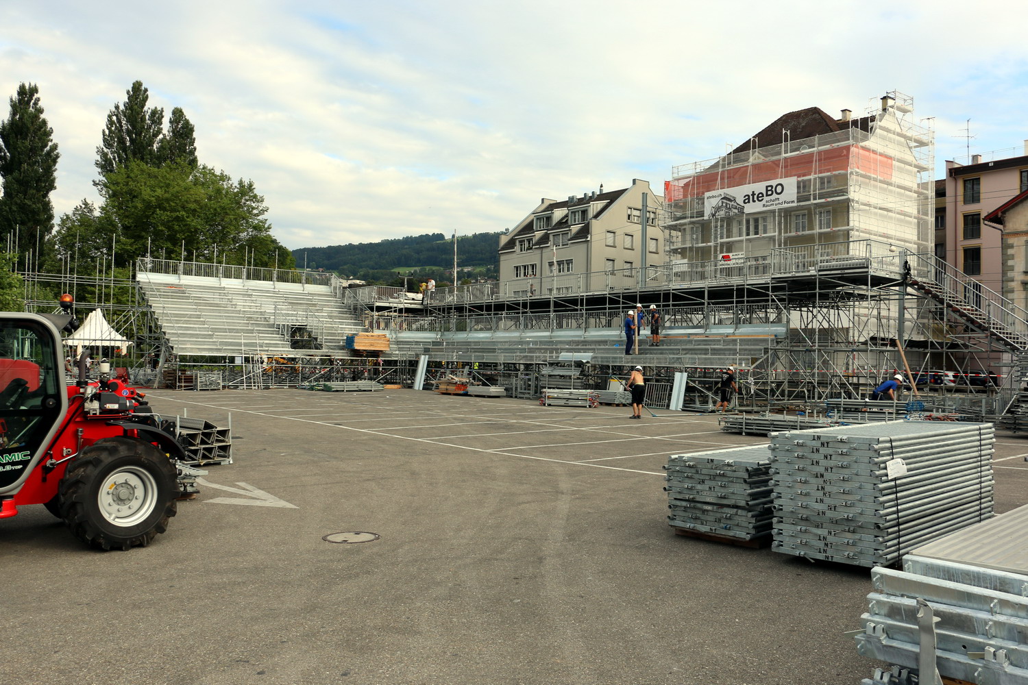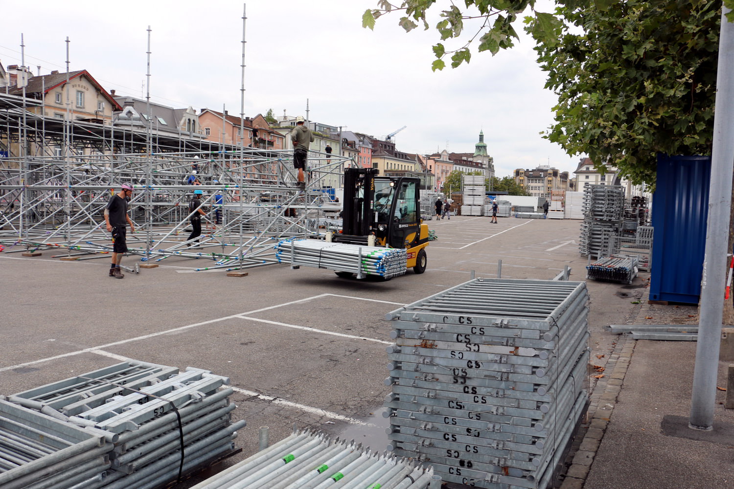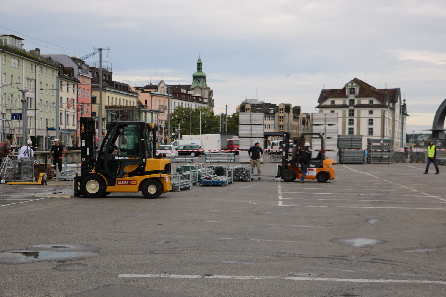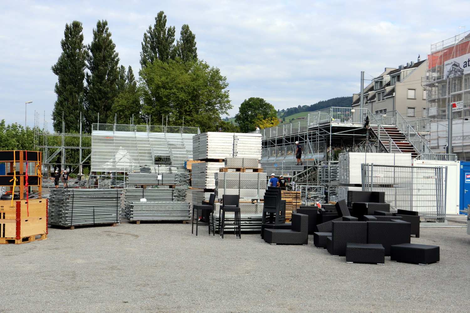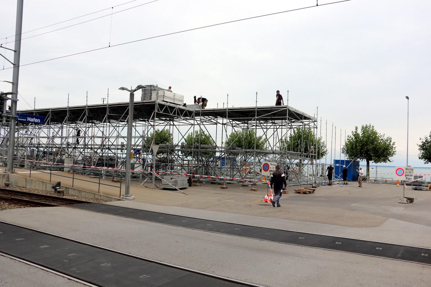 Seit gestern laufen die Aufbauarbeiten für die am Donnerstag beginnende Coopbeachtour. Viele HelferInnen sind daran, wieder das typische Beachambiente an unseren Hafen zu zaubern. So sah das um 8 Uhr aus: