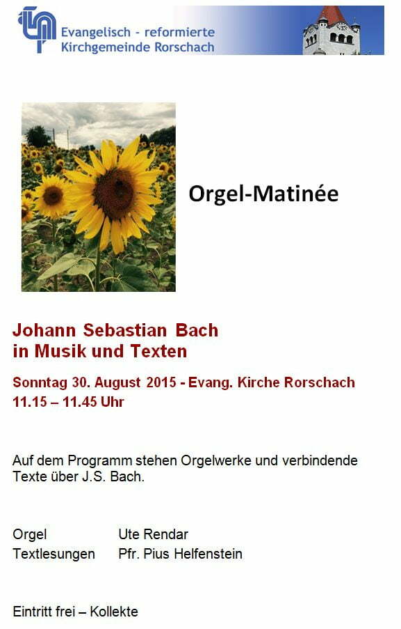 Orgel-Matinée in der Evang. Kirche 20. August 2015 - 04:00Am Sonntag, 30. August, von 11.15 bis 11.45 Uhr. >> www.ref-rorschach.chTeilen mit: Einen Link per E-Mail an einen Freund senden (Wird in neuem Fenster geöffnet) E-Mail Drucken (Wird in neuem Fenster geöffnet) Drucken Auf Facebook teilen (Wird in neuem Fenster geöffnet) Facebook Auf X teilen (Wird in neuem Fenster geöffnet) X Auf WhatsApp teilen (Wird in neuem Fenster geöffnet) WhatsApp Gefällt mir:Gefällt mir Wird geladen …Newsletter abonnieren Bitte dieses Feld leer lassenBitte wähle, ob Du über jeden neuen Beitrag sofort oder lieber jeden Morgen gegen 9 Uhr eine Zusammenfassung der neusten Beiträge erhalten möchtest.Liste(n) auswählen: Neues vom Echo (Zusammenfassung) Neues vom Echo (Sofortbenachrichtigung) Dieses Feld wird benötigt.Prüfen Sie Ihren Posteingang und den Spamordner, um Ihr Abonnement zu bestätigen.