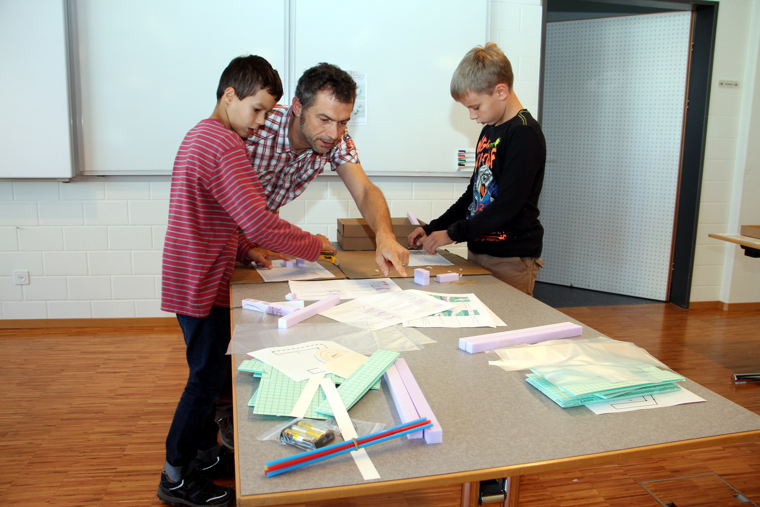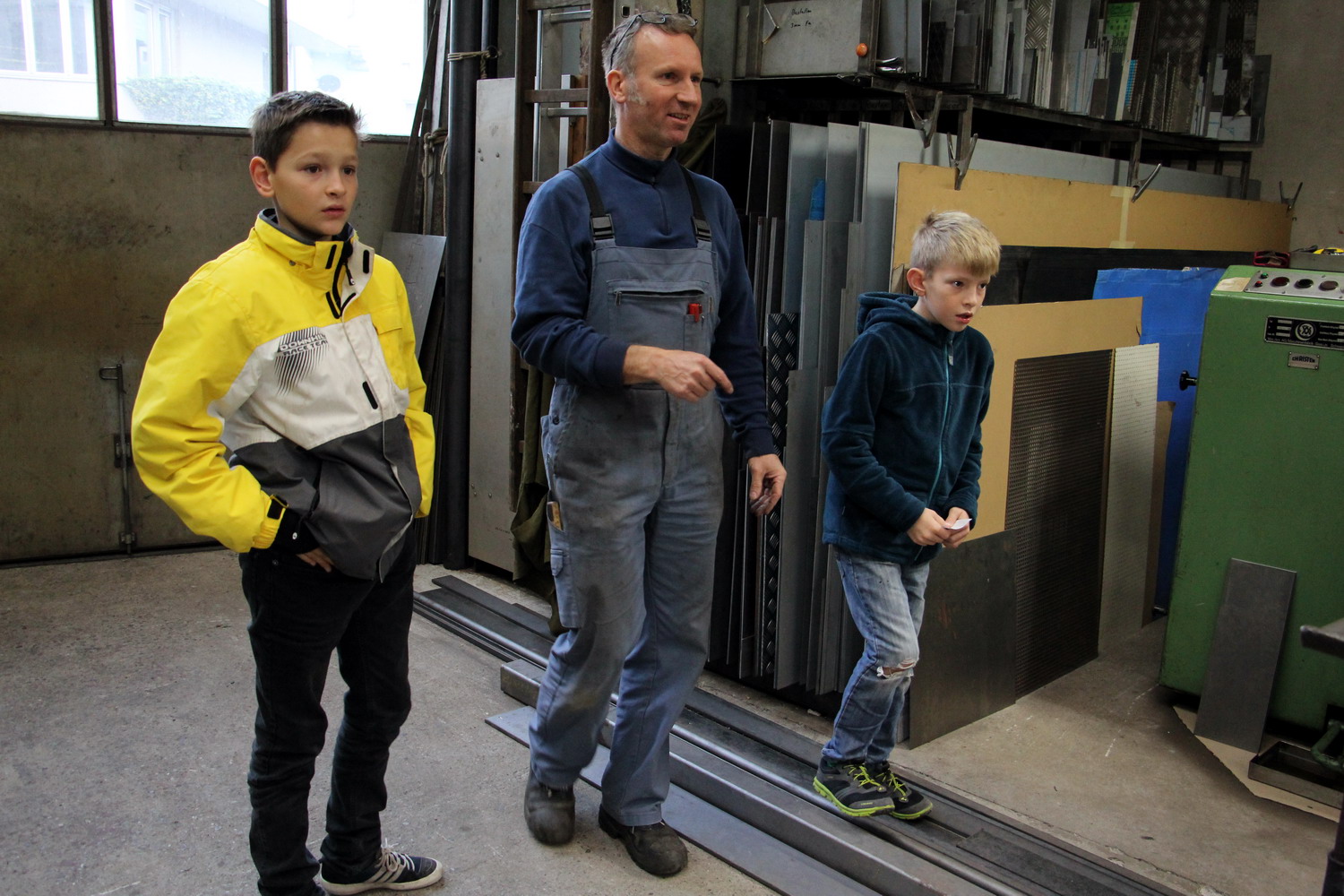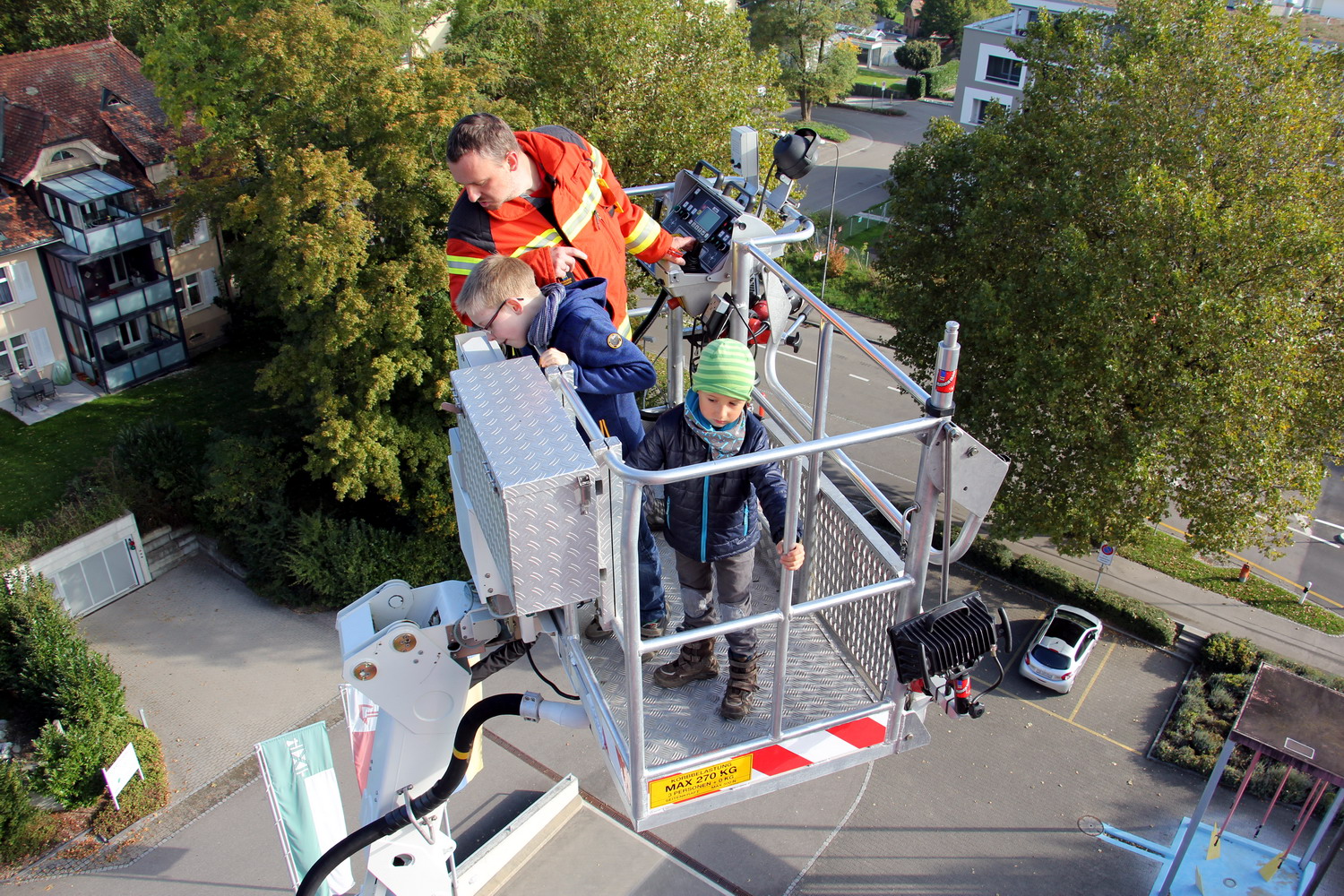 Immer während den Herbstferien bietet der FerienSpass am See den Kindern, die nicht in die Ferien verreisen, viele alternative Betätigungsfelder. Oben sieht man, wie sich zwei Knaben von Daniel Zwissler in die Geheimnisse des Schmiedeberufes einweisen lassen und unten sieht man eine ganze Kinderschar, die sich im Goldacher Depot für die Aufgaben der Feuerwehr interessierten. Höhepunkt für alle war natürlich die Fahrt mit der Hubretterbühne.