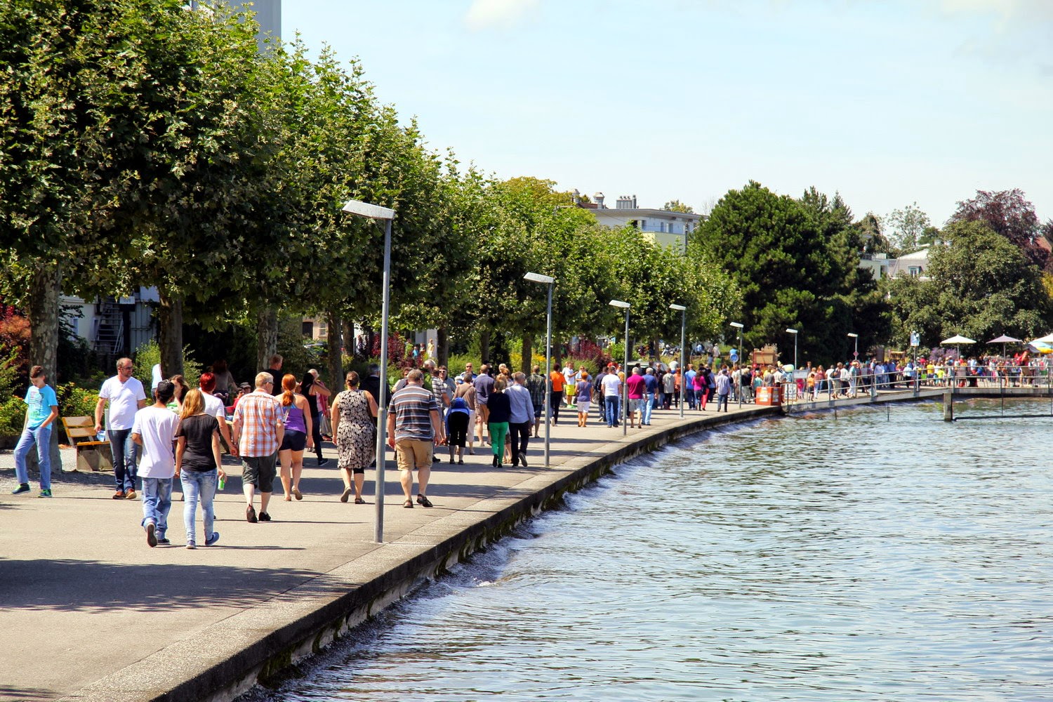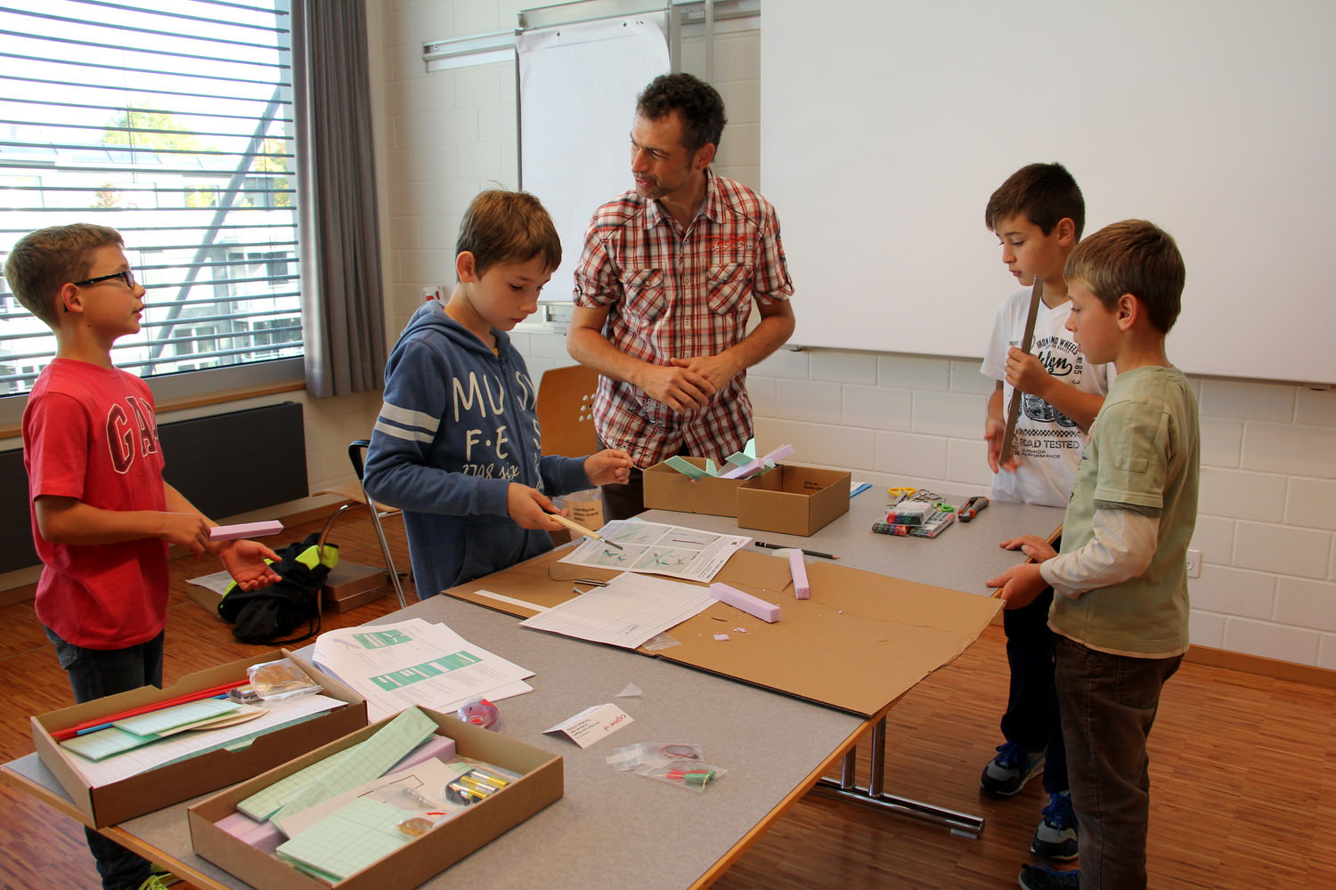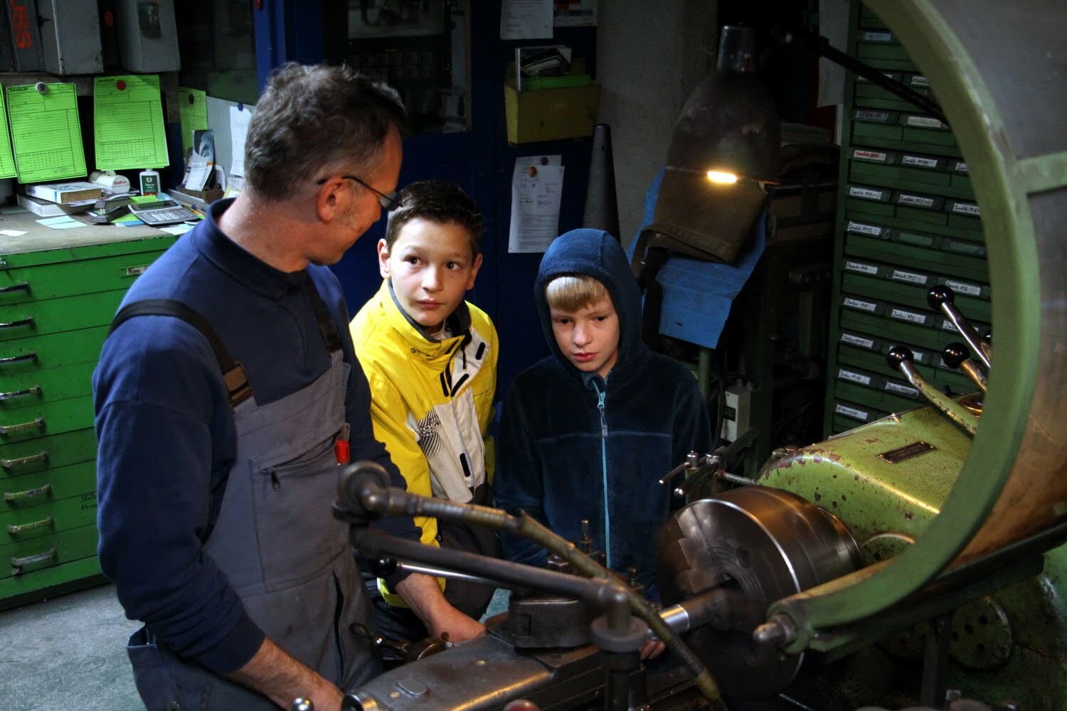 Immer während den Herbstferien bietet der FerienSpass am See den Kindern, die nicht in die Ferien verreisen, viele alternative Betätigungsfelder. Oben sieht man, wie sich zwei Knaben von Daniel Zwissler in die Geheimnisse des Schmiedeberufes einweisen lassen und unten sieht man eine ganze Kinderschar, die sich im Goldacher Depot für die Aufgaben der Feuerwehr interessierten. Höhepunkt für alle war natürlich die Fahrt mit der Hubretterbühne.
