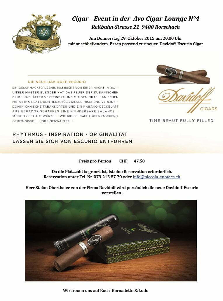 Die Plätze sind schnell weg … 12. Oktober 2015 - 03:42Wer da noch mit paffen will muss sich sputen … Anmeldung auch über info@piccola-enoteca.chTeilen mit: Einen Link per E-Mail an einen Freund senden (Wird in neuem Fenster geöffnet) E-Mail Drucken (Wird in neuem Fenster geöffnet) Drucken Auf Facebook teilen (Wird in neuem Fenster geöffnet) Facebook Auf X teilen (Wird in neuem Fenster geöffnet) X Auf WhatsApp teilen (Wird in neuem Fenster geöffnet) WhatsApp Gefällt mir:Gefällt mir Wird geladen …Newsletter abonnieren Bitte dieses Feld leer lassenBitte wähle, ob Du über jeden neuen Beitrag sofort oder lieber jeden Morgen gegen 9 Uhr eine Zusammenfassung der neusten Beiträge erhalten möchtest.Liste(n) auswählen: Neues vom Echo (Zusammenfassung) Neues vom Echo (Sofortbenachrichtigung) Dieses Feld wird benötigt.Prüfen Sie Ihren Posteingang und den Spamordner, um Ihr Abonnement zu bestätigen.