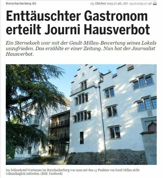 Online-Medien nehmen Hausverbotstory auf 26. Oktober 2015 - 04:52Das war auch nur eine Frage der Zeit. Ein Platz in der Fasnacht scheint fast sicher …>> http://www.20min.ch/schweiz/ostschweiz/story/Enttaeuschter-Gastronom-erteilt-Journi-Hausverbot-18174493Teilen mit: Einen Link per E-Mail an einen Freund senden (Wird in neuem Fenster geöffnet) E-Mail Drucken (Wird in neuem Fenster geöffnet) Drucken Auf Facebook teilen (Wird in neuem Fenster geöffnet) Facebook Auf X teilen (Wird in neuem Fenster geöffnet) X Auf WhatsApp teilen (Wird in neuem Fenster geöffnet) WhatsApp Gefällt mir:Gefällt mir Wird geladen …Newsletter abonnieren Bitte dieses Feld leer lassenBitte wähle, ob Du über jeden neuen Beitrag sofort oder lieber jeden Morgen gegen 9 Uhr eine Zusammenfassung der neusten Beiträge erhalten möchtest.Liste(n) auswählen: Neues vom Echo (Zusammenfassung) Neues vom Echo (Sofortbenachrichtigung) Dieses Feld wird benötigt.Prüfen Sie Ihren Posteingang und den Spamordner, um Ihr Abonnement zu bestätigen.
