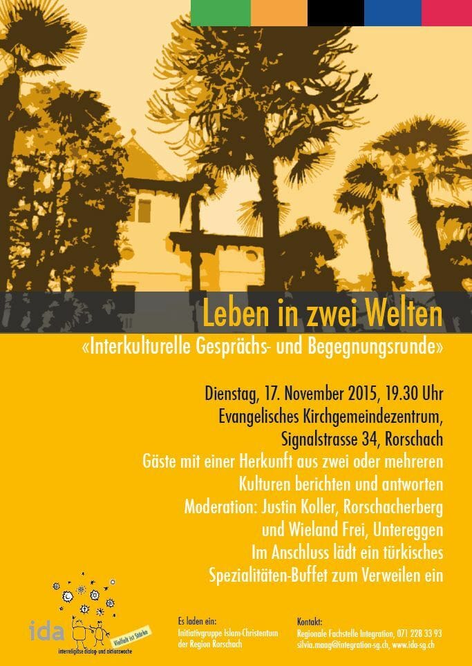 Leben in zwei Welten 13. November 2015 - 04:36Migration ist seit Wochen ein Dauerthema. Am kommenden Dienstag besteht in Rorschach die Möglichkeit, sich aus erster Hand Eindrücke zu holen, was es mit dem Leben in zwei Welten so auf sich hat. Dürfte ein spannender Abend werden.Teilen mit: Einen Link per E-Mail an einen Freund senden (Wird in neuem Fenster geöffnet) E-Mail Drucken (Wird in neuem Fenster geöffnet) Drucken Auf Facebook teilen (Wird in neuem Fenster geöffnet) Facebook Auf X teilen (Wird in neuem Fenster geöffnet) X Auf WhatsApp teilen (Wird in neuem Fenster geöffnet) WhatsApp Gefällt mir:Gefällt mir Wird geladen …Newsletter abonnieren Bitte dieses Feld leer lassenBitte wähle, ob Du über jeden neuen Beitrag sofort oder lieber jeden Morgen gegen 9 Uhr eine Zusammenfassung der neusten Beiträge erhalten möchtest.Liste(n) auswählen: Neues vom Echo (Zusammenfassung) Neues vom Echo (Sofortbenachrichtigung) Dieses Feld wird benötigt.Prüfen Sie Ihren Posteingang und den Spamordner, um Ihr Abonnement zu bestätigen.