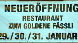 Das Plakat an der Rosenstrasse ist nicht zu übersehen. Anscheinend wird da am kommenden Wochenende ein weiterer Neustart im Goldige Fässli versucht. Vermutlich wird bis dann auch noch das Beizenschild…