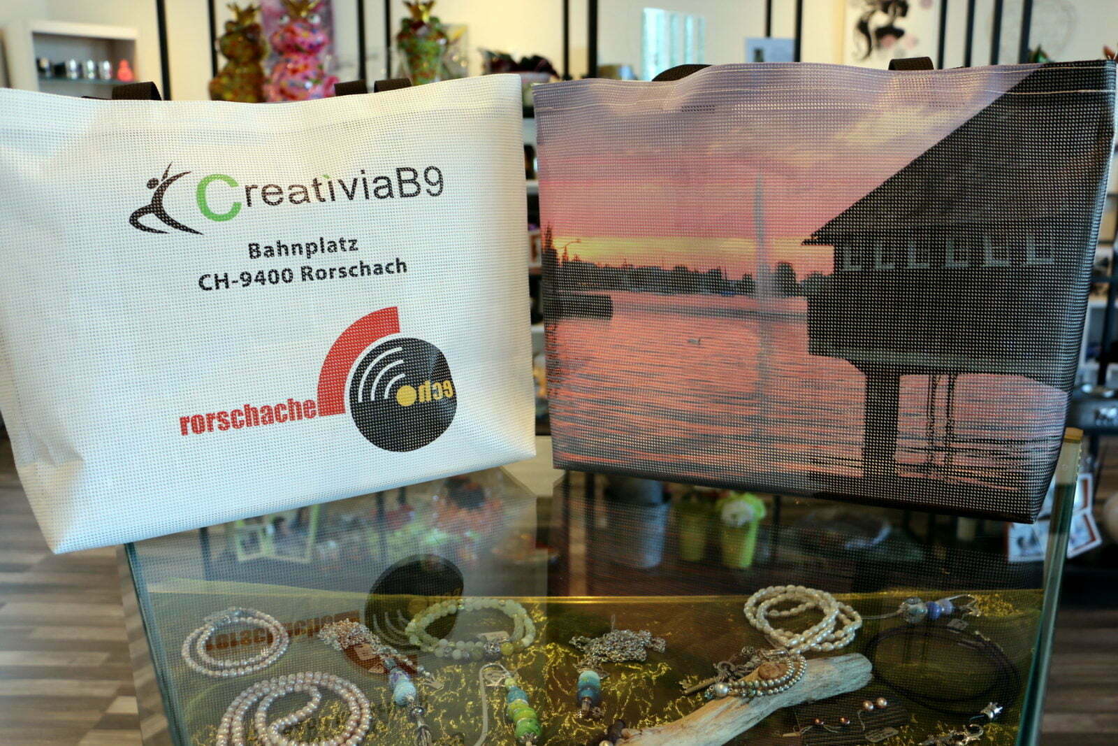 Die Idee mit so einer Freizeittasche und ein bisschen Werbung in eigener Sache und vor allem mit der Idee, unser Rorschach zu zeigen, greift um sich. Zusammen mit der Geschenksboutique CreativiaB9 am Bahnplatz beim Hafenbahnhof sind neue Exemplare eingetroffen, die ab sofort in der CreativiaB9 zu beziehen sind. Eine Tasche kostet Fr. 29.90.