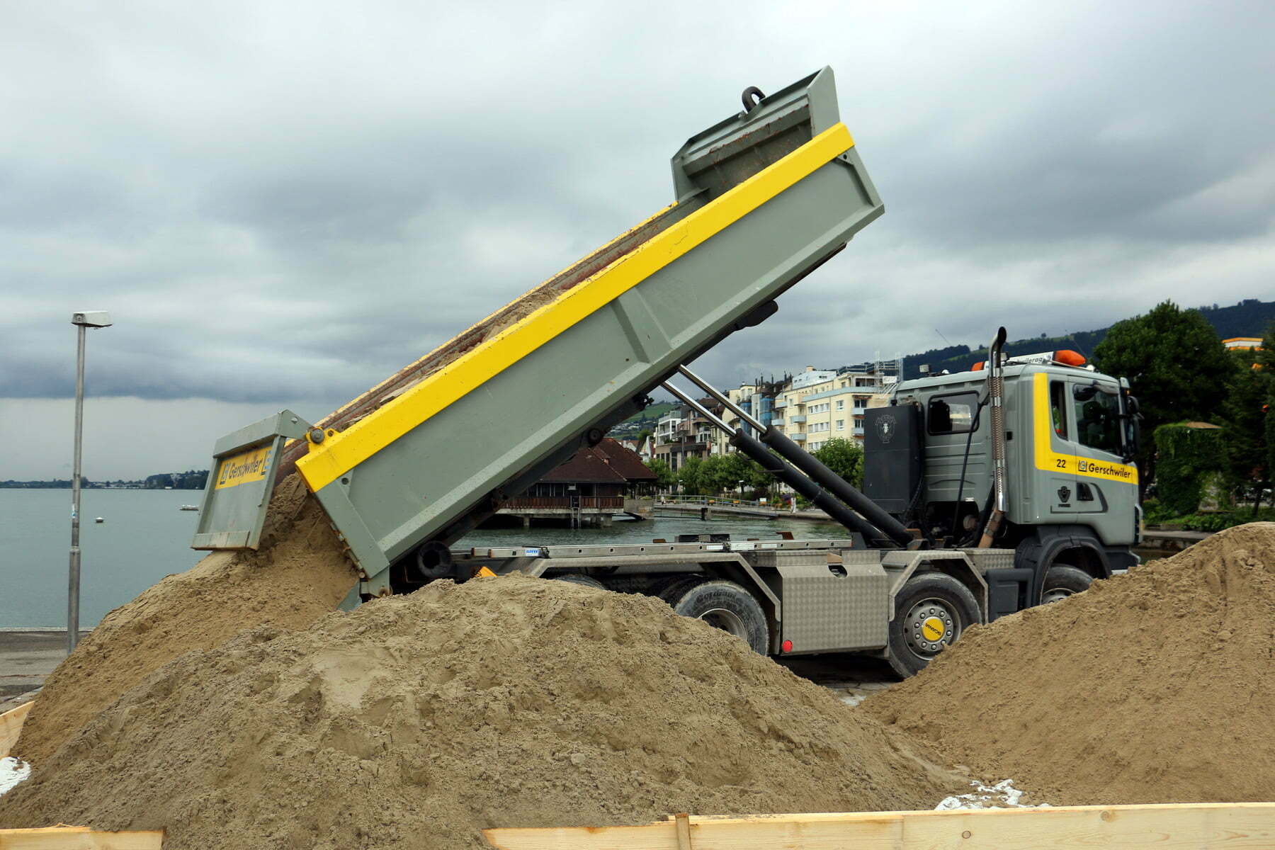 Gerade noch rechtzeitig vor den Regengüssen wieder daheim angekommen. Auf der Arionwiese wird der letzte Sand für das Sandskulpturenfestival angeliefert, beäugt von der berühmten Rorschacher Schwanenfamilie. Und auch ansonsten gab es heute wunderbare Stimmungsbilder am See. Die Badhütte meldet immer noch stolze 21 Grad Wassertemperatur. Hier einige Schnappschüsse davon.