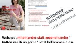 Oder anders gesagt: jetzt haben wir den Salat. Der Slogan „miteinander statt gegeneinander“ wird nun von beiden Lagern verwendet. Wobei man davon ausgehen darf, dass die SP den Begriff „miteinander“…