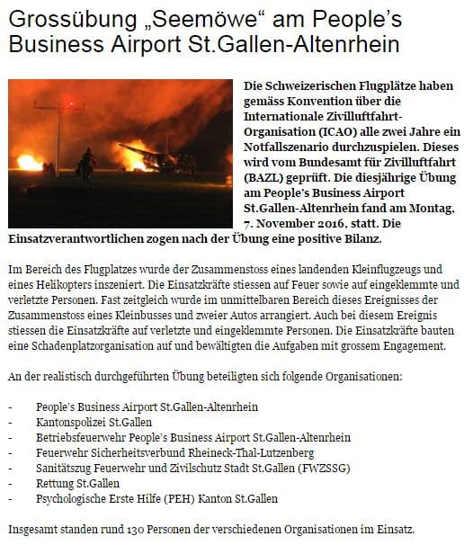 Gestern haben rund 130 Personen verschiedenster Rettungsteams an einer Übung am Flughafen Altenrhein teilgenommen. Hier Bilder von der Kapo SG.