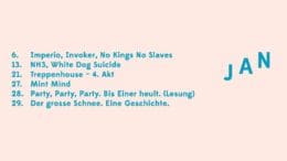 Am kommenden Freitag, 6. Januar 2017. Details zu den Bands und Videos findet man wie immer auf der Treppenhaus-Homepage. Und ein Januar-Schmankerl ist auch schon auszumachen …