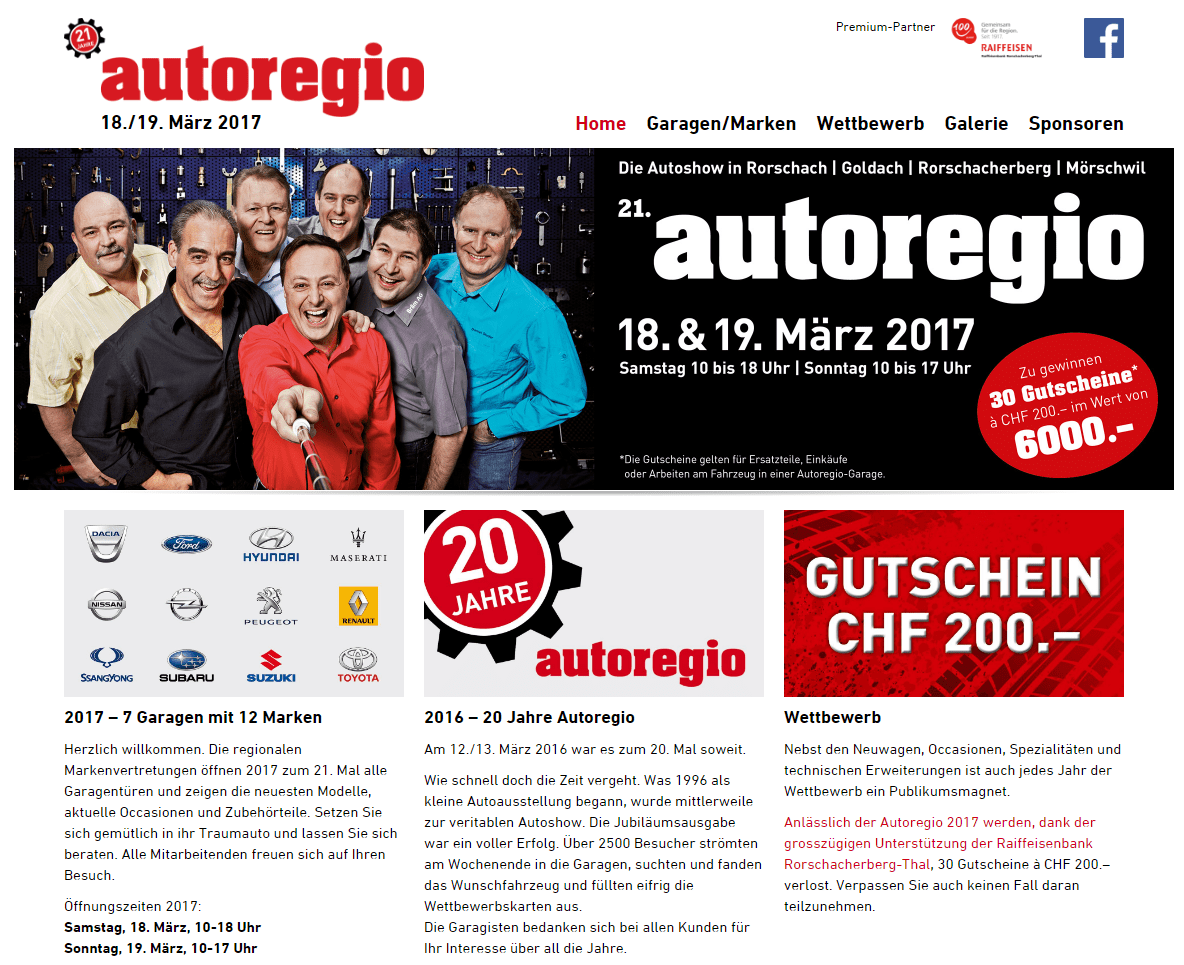 Man kann sich in den nächsten beiden Tagen ganz bequem bei 7 Garagen in der Region über die neusten Automodelle informieren – und erst noch Preise gewinnen. Mit dabei sind in Rorschach P. + P. Gartwyl, in Goldach Studer & Co. und Bräm und City-Garage, in Rorschacherberg Langmoos-Garage und Wylen-Garage, in Mörschwil Gargiulo Automobil. Generelle Infos zur Autoregio 2017 findet man hier.