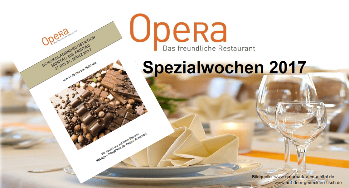 Eine Schokoladenwoche im Pflegeheim PeLagoThemen:Region 27. März 2017 - 05:21Von heute bis Freitag jeweils zwischen 11 und 16 Uhr im Restaurant Opera im Pflegeheim der Region Rorschach. Nachstehend die nächsten Spezialwochen.Teilen mit: Einen Link per E-Mail an einen Freund senden (Wird in neuem Fenster geöffnet) E-Mail Drucken (Wird in neuem Fenster geöffnet) Drucken Auf Facebook teilen (Wird in neuem Fenster geöffnet) Facebook Auf X teilen (Wird in neuem Fenster geöffnet) X Auf WhatsApp teilen (Wird in neuem Fenster geöffnet) WhatsApp Gefällt mir:Gefällt mir Wird geladen …Newsletter abonnieren Bitte dieses Feld leer lassenBitte wähle, ob Du über jeden neuen Beitrag sofort oder lieber jeden Morgen gegen 9 Uhr eine Zusammenfassung der neusten Beiträge erhalten möchtest.Liste(n) auswählen: Neues vom Echo (Zusammenfassung) Neues vom Echo (Sofortbenachrichtigung) Dieses Feld wird benötigt.Prüfen Sie Ihren Posteingang und den Spamordner, um Ihr Abonnement zu bestätigen.