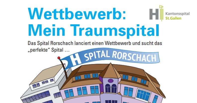 Ein Wettbewerb, der es echt in sich hat: Wie sieht mein Traumspital aus? Das Spital Rorschach hat in Zusammenarbeit mit der Quartierkoordination der Stadt Rorschach einen Wettbewerb lanciert. Gesucht sind Werke, welche auf originelle Art und Weise zeigen, wie ein Traumspital aussehen könnte. Malen, basteln, filmen, schreiben, zeichnen, fotografieren, kleben… der Fantasie und Kreativität sind keine Grenzen gesetzt. Abgabeschluss ist am 3. Juli 2017. Teilnehmen können alle Interessierten der Region Rorschach. Sämtliche Eingaben werden ab dem 15. August 2017 im Spital Rorschach ausgestellt. Die Preisverleihung findet am 26. Oktober 2017 statt.