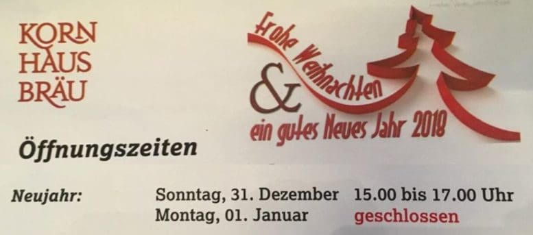 Kornhausbräu lädt zum SilvesterapéroThemen:KornhausbräuRorschach 28. Dezember 2017 - 05:23Am kommenden Sonntag (Silvester) ist die Kornhausbraü von 15 bis 17 Uhr geöffnet. Der 1. Januar 2018 ist dann generell für die eigene Regeneration vorgesehen …Teilen mit: Einen Link per E-Mail an einen Freund senden (Wird in neuem Fenster geöffnet) E-Mail Drucken (Wird in neuem Fenster geöffnet) Drucken Auf Facebook teilen (Wird in neuem Fenster geöffnet) Facebook Auf X teilen (Wird in neuem Fenster geöffnet) X Auf WhatsApp teilen (Wird in neuem Fenster geöffnet) WhatsApp Gefällt mir:Gefällt mir Wird geladen …Newsletter abonnieren Bitte dieses Feld leer lassenBitte wähle, ob Du über jeden neuen Beitrag sofort oder lieber jeden Morgen gegen 9 Uhr eine Zusammenfassung der neusten Beiträge erhalten möchtest.Liste(n) auswählen: Neues vom Echo (Zusammenfassung) Neues vom Echo (Sofortbenachrichtigung) Dieses Feld wird benötigt.Prüfen Sie Ihren Posteingang und den Spamordner, um Ihr Abonnement zu bestätigen.