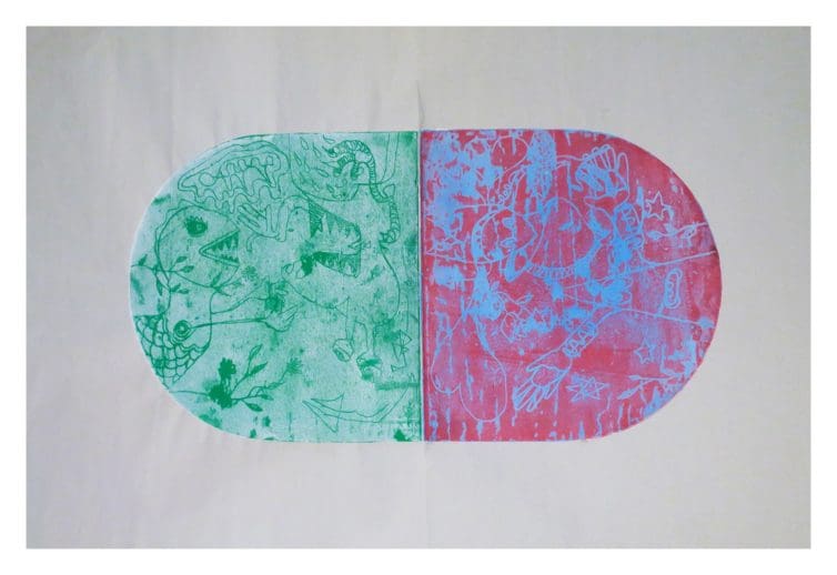 Patrik Muchenberger und Alex Brotbeck sind als pengpengduo wieder mit einer brandneuen Serie und dem Namen Nitro Pill zu sehen. In experimenteller druckgrafischer Technik, erforschen und suchen die beiden, den Schnittpunkt von Druck und Schablone zur Malerei.