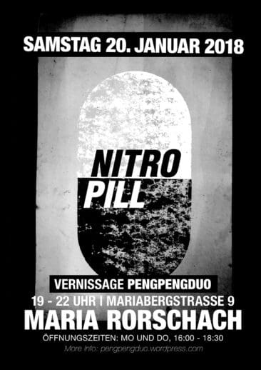 Vernissage, Nitro Pill, pengpengduo: Samstag, 20.01.2018 von 19.00 Uhr bis 22.00 Uhr. MARIA Forum.Kunst, Mariabergstrasse 9, Rorschach. Öffnungszeiten während 2 Wochen auf mariaberg9.wordpress.com