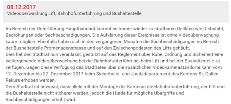 George Orwell ist schon sehr lange in Rorschach angekommen. Die neuen Videokameras im Hauptbahnhof waren auch angekündigt. Die Stadt Rorschach hat am 8. Dezember 2017 bereits ausführlich berichtet. Seit einigen Tagen sind die Kameras nun in Betrieb. Wir werden sehen, welche Auswirkungen diese Massnahme im Bereich Hauptbahnhof-Unterführung und Bushaltestelle hat.