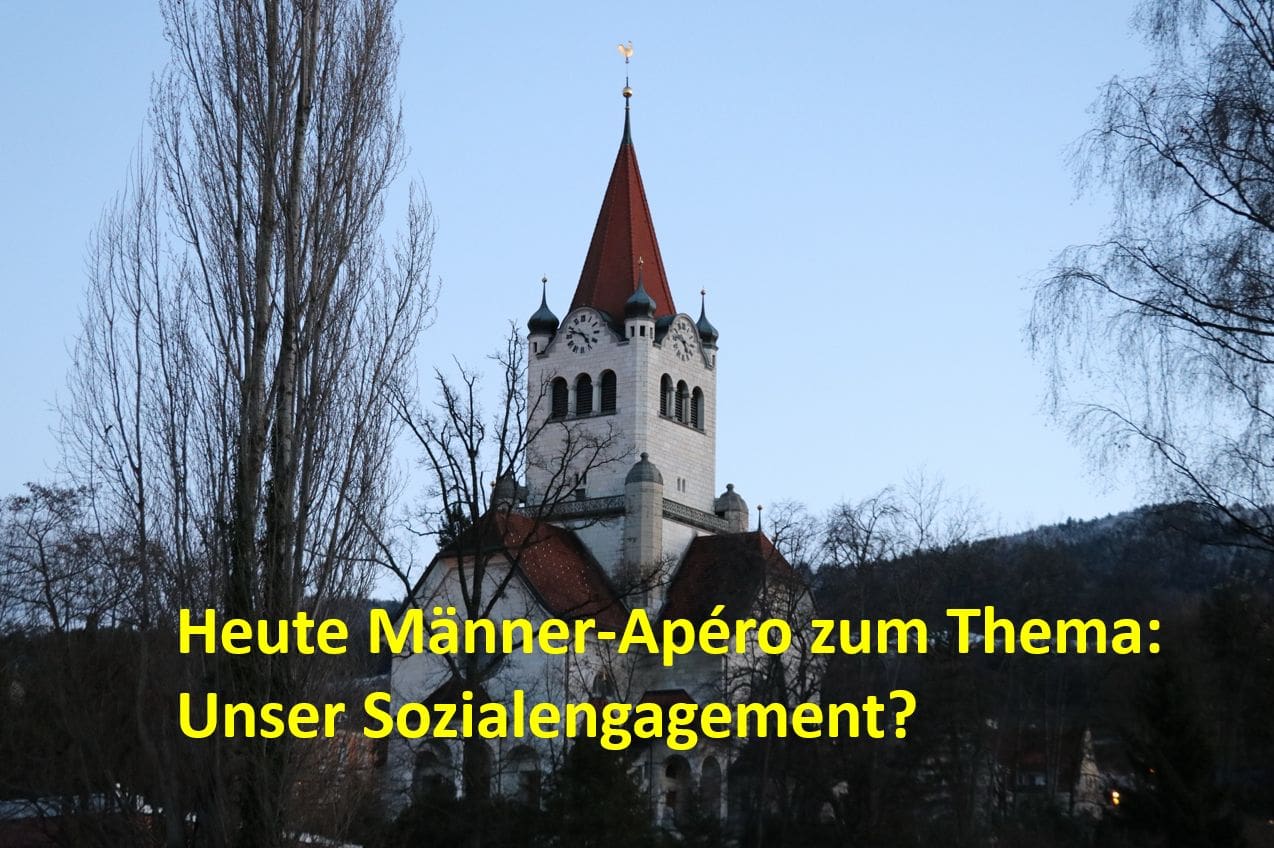 Beim heutigen Männer-Apéro der Evang.-ref. Kirche Rorschach, bei dem alle Männer herzlich eingeladen sind, machen sich die Teilnehmenden Gedanken, welches Sozialengagement zu wem passt und was man konkret an die Hand nehmen können. Die Teilnehmenden sprechen über diese Kompetenzen und was es braucht, damit der Männer-Power gemeinsam unterstützend eindesetzt werden kann. Sicher gibt es in der eigenen Gemeinde Menschen in Not, denen man mit einem Arbeitseinsatz helfen würde. Durch den Abend führt Marcel Stieger vom Männer-Apéro-Team. Man trifft sich heute Freitag, 23. Februar, 20 Uhr im Treffpunktraum der Evangelischen Kirche Rorschach, Signalstrasse 38 (bitte Seiteneingang benutzen). (pfh)