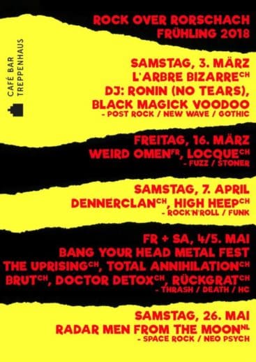Rock over Rorschach im TreppenhausThemen:BeizenKulturRorschachTreppenhaus 28. Februar 2018 - 05:21Am nächsten Samstag, 3. März, ist Teil 1 angesagt. Die nächsten Daten: 16. März, 7. April, 4./5. Mai und 26. Mai.Teilen mit: Einen Link per E-Mail an einen Freund senden (Wird in neuem Fenster geöffnet) E-Mail Drucken (Wird in neuem Fenster geöffnet) Drucken Auf Facebook teilen (Wird in neuem Fenster geöffnet) Facebook Auf X teilen (Wird in neuem Fenster geöffnet) X Auf WhatsApp teilen (Wird in neuem Fenster geöffnet) WhatsApp Gefällt mir:Gefällt mir Wird geladen …Newsletter abonnieren Bitte dieses Feld leer lassenBitte wähle, ob Du über jeden neuen Beitrag sofort oder lieber jeden Morgen gegen 9 Uhr eine Zusammenfassung der neusten Beiträge erhalten möchtest.Liste(n) auswählen: Neues vom Echo (Zusammenfassung) Neues vom Echo (Sofortbenachrichtigung) Dieses Feld wird benötigt.Prüfen Sie Ihren Posteingang und den Spamordner, um Ihr Abonnement zu bestätigen.