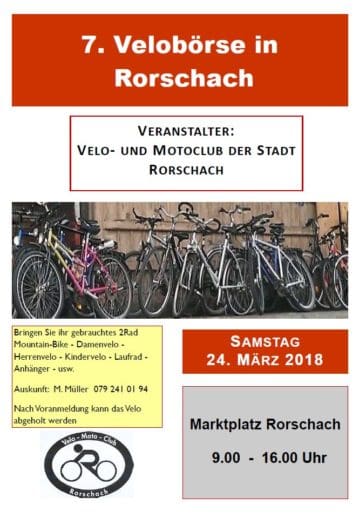 Ebenfalls morgen Samstag findet ab 9 Uhr auf dem Marktplatz in Rorschach die 7. Velobörse des Velo- und Motoclubs Rorschach statt. Bei so viel Velo fehlt eigentlich nur noch der Song „Bicycle Race“ von Queen in Rorschachs Gassen …
