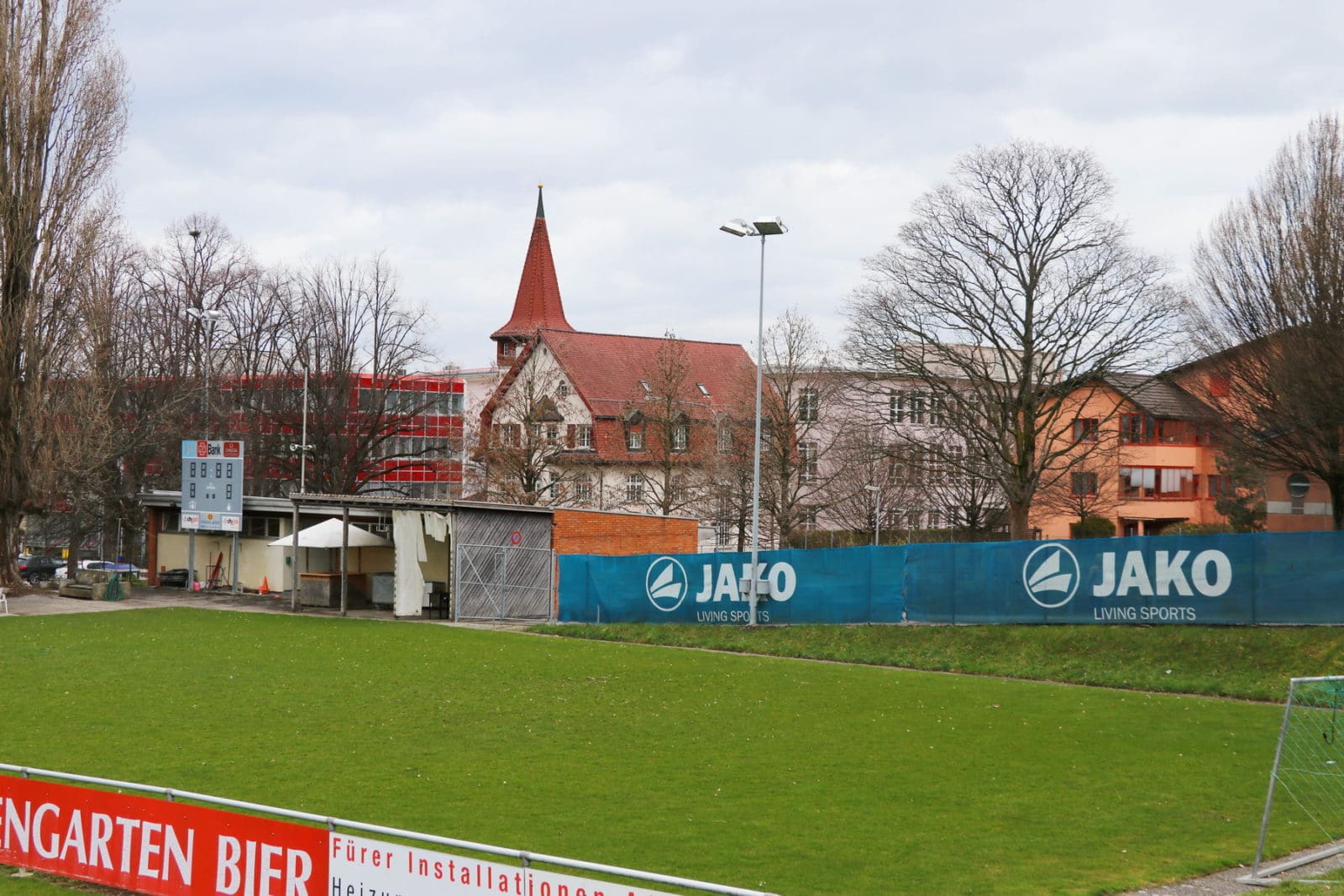 Anlässlich der Bürgerversammlung vom letzten Dienstagabend hat Stapi Thomas Müller auch noch erwähnt, dass eine Stadt, die vor allem auch für Familien mit Kindern attraktiv sein will, auch Kinderärzte am Ort haben muss. Es seinen diesbezüglich Bestrebungen im Gang und man diskutiere und skizziere Möglichkeiten. Eine Variante davon sei, das marode Garderobengebäude auf dem Sportplatz Pestalozzi – wahrlich keine Visitenkarte mehr für die Stadt und ein jahrzehntealtes Anliegen des FC – durch einen Neubau zu ersetzen. Dieser käme südlich des jetzigen Gebäudes zu stehen (im Beitragsbild also auf der rechten Seite). Der untere Stock würde den Fussballern zur Verfügung stehen, oben wäre so eine Gemeinschaftspraxis möglich. Mal schauen, was aus dieser Idee wird und ob sich das realisieren lässt.