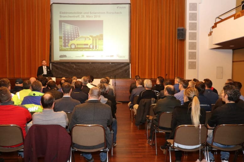 Gestern fand im Rorschacher Stadthofsaal der Branchentreff „Elektromobilität und Solarstrom“ statt. Rund 60 Teilnehmende – mehr als 20 davon allein aus der Stadt Rorschach – nutzen die Gelegenheit, sich über aktuelle Trends in diesem Gebiet zu informieren und von Fachpersonen detaillierte Inputs zu erhalten.