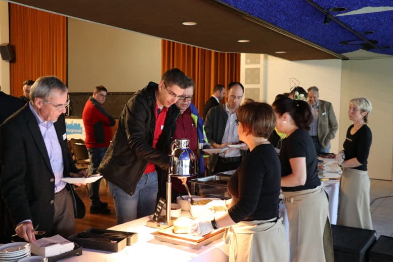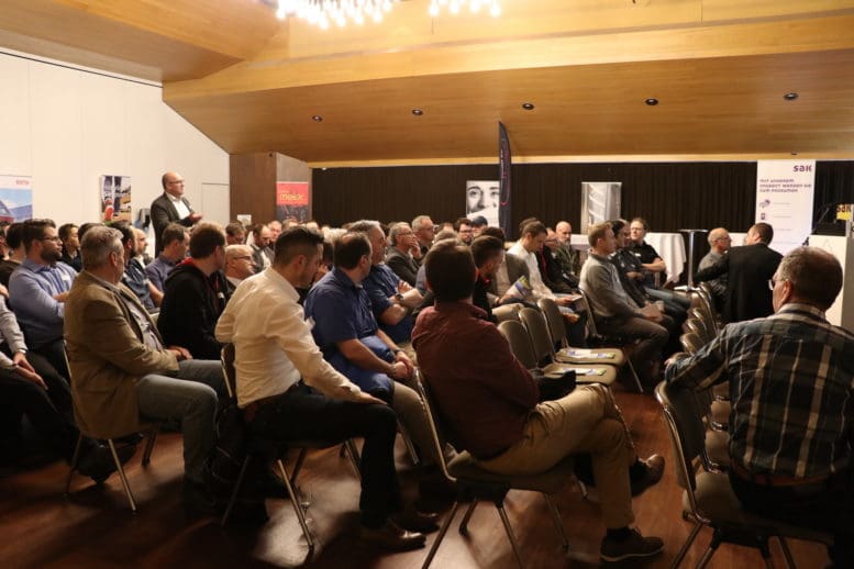 Zur Einstimmung trafen sich gestern über Mittag rund 60 Fachleute zu einem Branchentreff im Stadthofsaal Rorschach. Ohne Schönfärberei wurden einerseits die vielversprechenden Aussichten – vor allem der Ersatz von fossilen Treibstoffen – diskutiert, andererseits aber auch Aufgaben, die bei der Umsetzung zu erwarten sind. Im Vordergrund stand dabei die Ladeinfrastruktur in Mehrfamilienhäusern. In bestehenden Bauten geht es in erster Linie um die Frage, ob die vorhandene Hauszuleitung auf die Fahrzeuge verteilt (was allenfalls zu reduzierten Ladeleistungen resp. längeren Ladezeiten führen kann) oder ob sie verstärkt werden soll, was mit erheblichen Kosten verbunden ist. Viel grösser ist der Spielraum bei neuen Überbauungen. Hier lässt sich dank intelligenter Steuerung der vielfältigen Verbraucher (neben den Haushaltgeräten und Elektroautos auch Wärmepumpen) und stationären Batteriespeichern der Eigenverbrauch von Solarstrom sehr weit optimieren. Seit 1. Januar 2018 lässt das Gesetz auch Eigenverbrauchsgemeinschaften zu, so dass Stromproduktion und -verbrauch ganzer Quartiere koordiniert werden können.