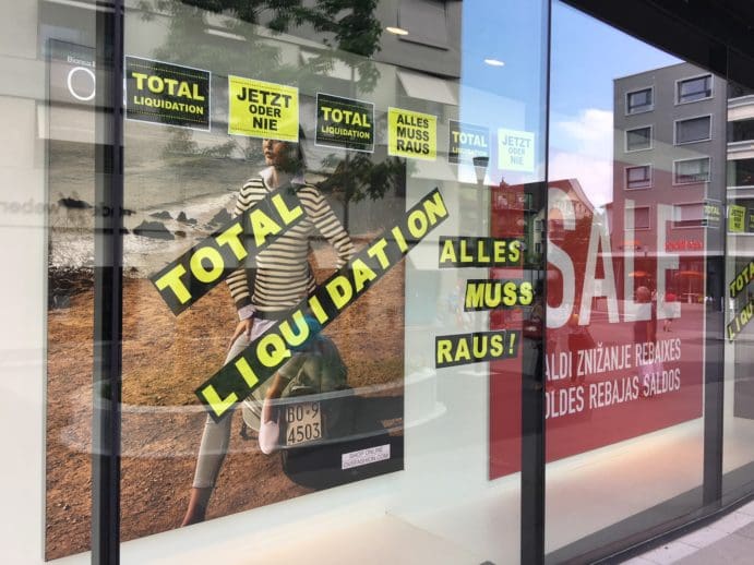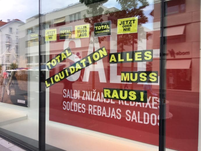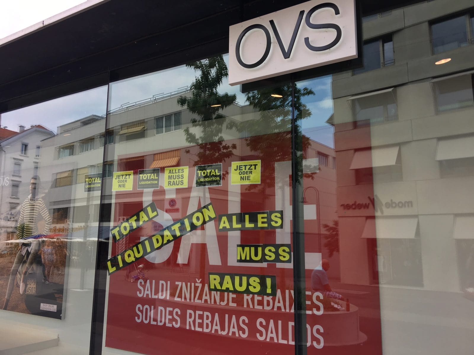 Das war irgendwie absehbar …Themen:Rorschach 8. Juni 2018 - 16:00Die Schaufenster an der OVS-Filiale Rorschach sind aussagekräftig genug. Schade, aber das war absehbar. Teilen mit: Einen Link per E-Mail an einen Freund senden (Wird in neuem Fenster geöffnet) E-Mail Drucken (Wird in neuem Fenster geöffnet) Drucken Auf Facebook teilen (Wird in neuem Fenster geöffnet) Facebook Auf X teilen (Wird in neuem Fenster geöffnet) X Auf WhatsApp teilen (Wird in neuem Fenster geöffnet) WhatsApp Gefällt mir:Gefällt mir Wird geladen …Newsletter abonnieren Bitte dieses Feld leer lassenBitte wähle, ob Du über jeden neuen Beitrag sofort oder lieber jeden Morgen gegen 9 Uhr eine Zusammenfassung der neusten Beiträge erhalten möchtest.Liste(n) auswählen: Neues vom Echo (Zusammenfassung) Neues vom Echo (Sofortbenachrichtigung) Dieses Feld wird benötigt.Prüfen Sie Ihren Posteingang und den Spamordner, um Ihr Abonnement zu bestätigen.