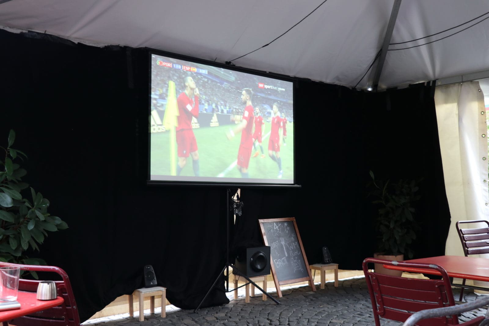 Die WM kommt auf Touren – zumindest auf den Spielfeldern. Der späte Ausgleich zum 3:3 zwischen Spanien und Portugal führte dann auch dazu, dass das mit der Huperei durch Rorschachs Gassen nicht stattgefunden hat. Es könnte also sein, dass die „Hup-Premiere“ heute die Kroaten in Rorschach starten. Mal schauen. Das Bild stammt aus dem Zelt vor dem Treppenhaus.