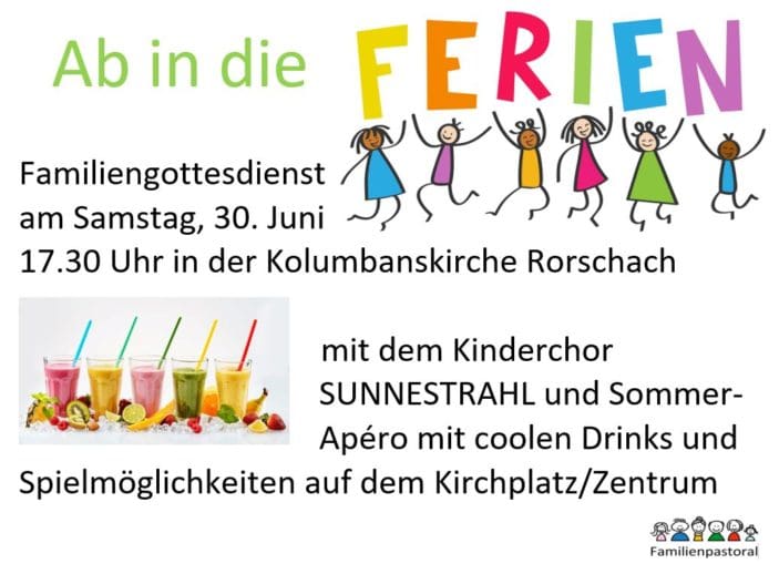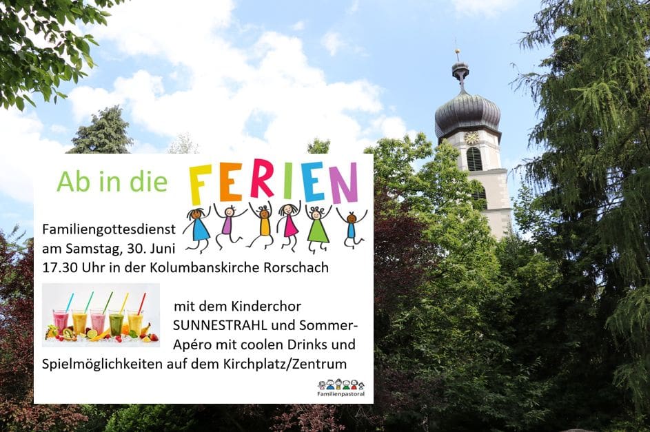 Der Familiengottesdienst zum FerienbeginnThemen:Kath. RorschachRorschach 27. Juni 2018 - 05:05Am nächsten Samstag ab 17.30 Uhr in der Kolumbanskirche, denn die Sommerferien stehen sozusagen schon fast vor der Tür.Teilen mit: Einen Link per E-Mail an einen Freund senden (Wird in neuem Fenster geöffnet) E-Mail Drucken (Wird in neuem Fenster geöffnet) Drucken Auf Facebook teilen (Wird in neuem Fenster geöffnet) Facebook Auf X teilen (Wird in neuem Fenster geöffnet) X Auf WhatsApp teilen (Wird in neuem Fenster geöffnet) WhatsApp Gefällt mir:Gefällt mir Wird geladen …Newsletter abonnieren Bitte dieses Feld leer lassenBitte wähle, ob Du über jeden neuen Beitrag sofort oder lieber jeden Morgen gegen 9 Uhr eine Zusammenfassung der neusten Beiträge erhalten möchtest.Liste(n) auswählen: Neues vom Echo (Zusammenfassung) Neues vom Echo (Sofortbenachrichtigung) Dieses Feld wird benötigt.Prüfen Sie Ihren Posteingang und den Spamordner, um Ihr Abonnement zu bestätigen.