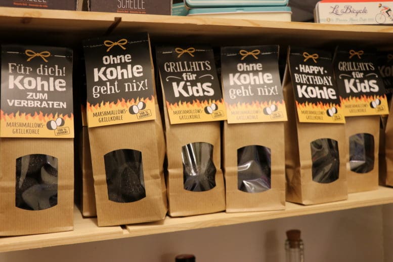 Auch bei „Verzauberte Momente“ ist alles auf Sommer eingerichtet und wer richtig schön stöbert, findet beispielsweise auch diese kleinen Kohlesäckli, mit denen man garantiert die Lacher auf sicher hat. Ein passendes Mitbringsel in dieser Jahrszeit. Und auch sonst findet man eine breite Palette von Geschenkartikeln aller Art. Inegüxle ist angesagt.