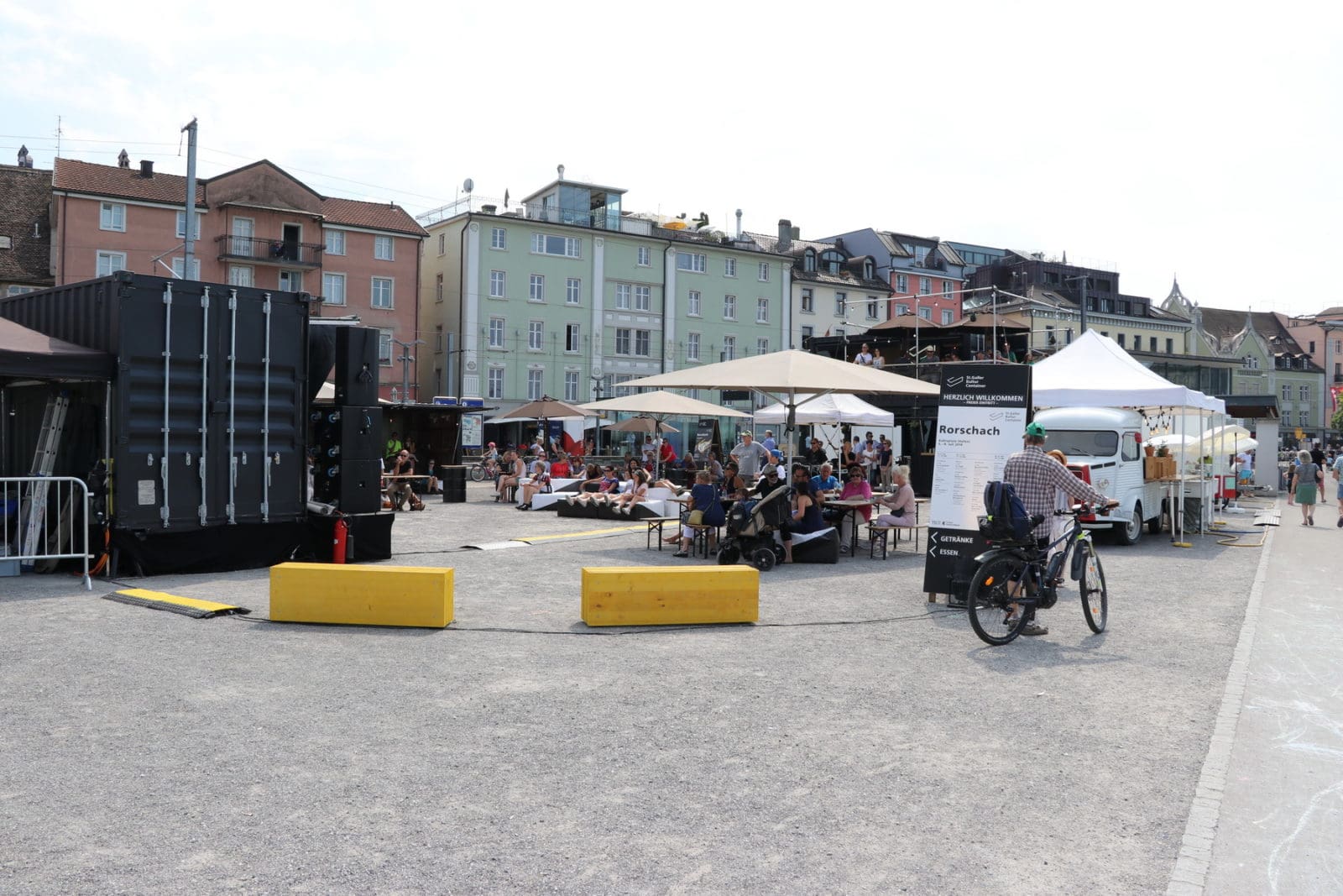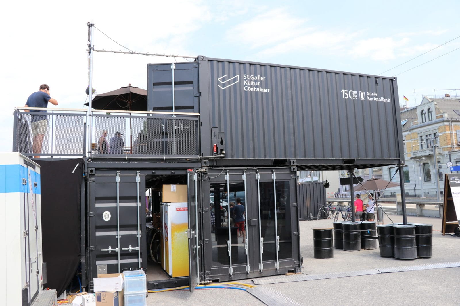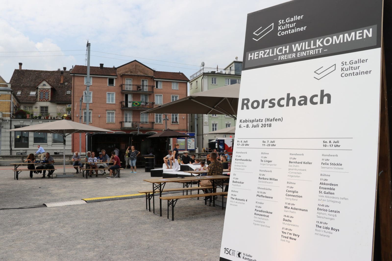 Der St. Galler Kulturcontainer hat über das Wochenende Halt in Rorschach gemacht. Nachdem der Freitag wegen dem Regen buchstäblich ein bisschen ins Wasser gefallen ist wurden die Initianten aber am Samstag und gestern Sonntag nicht nur mit gutem Wetter, sondern auch noch mit vielen BesucherInnen entschädigt. Herzlichen Dank, dass dieser öde Platz für drei Tage etwas aufgewertet wurde. Während der Kulturcontainer jetzt Pause macht und ab dem 10. August in Wil aufgestellt wird, wird der Kabisplatz wohl wieder seinen sattsam bekannten Dornröschenschlaf fallen und am Beachevent wieder wach geküsst, der dann vom 23. bis 26. August diesen Platz belebt. Hier Bilder, allesamt aufgenommen gestern Sonntag.