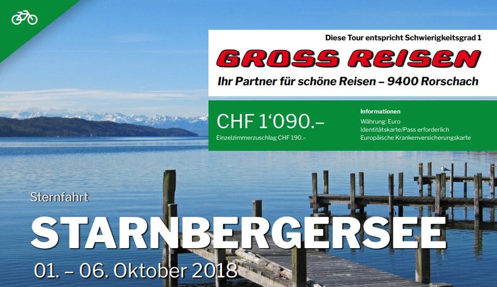 Neben einer 6-tägigen Sternfahrt zum Starnbergersee bietet Gross Reisen während den Herbstferien auch Tagesreisen in den Europapark und ins Legoland an. Details und Daten findet man auf der Homepage.