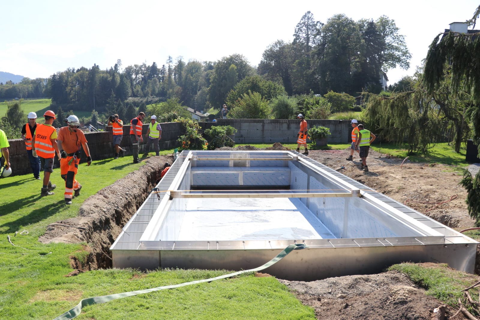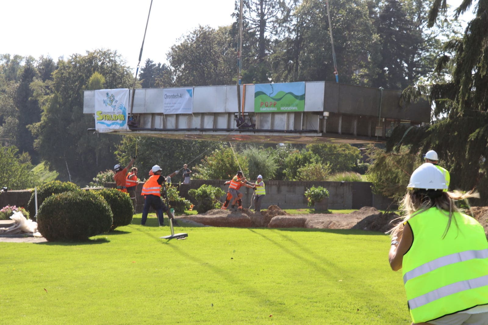 Gestern Nachmittag in Tübach. Ein Schwimmbad wird mit einem Helikoptertransport an den neuen Standplatz versetzt. Der Dank für diesen Tipp geht an Manuel Riedo von der Firma Popp Gartenbau AG in Mörschwil. Hier Schnappschüsse von dieser spektakulären Aktion.
