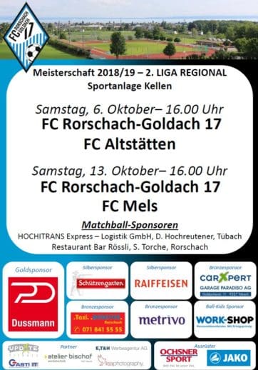 Gestern war es bereits der sechste Sieg im sechsten Spiel, welchen die 2. Liga-Spieler des FC RG 17 für sich verbuchen konnten. In Ruggell gewann Rorschach-Goldach mit 0:1 und hat seinen Leaderposition damit gefestigt. Den Siegtreffer erzielte Oli Baumann in der Nachspielzeit der 1. Halbzeit. Nun folgen zwei Heimspiele auf Kellen. Am kommenden Samstag gegen Altstätten und eine Woche später gegen Mels. Anpfiff ist jeweils um 16 Uhr.