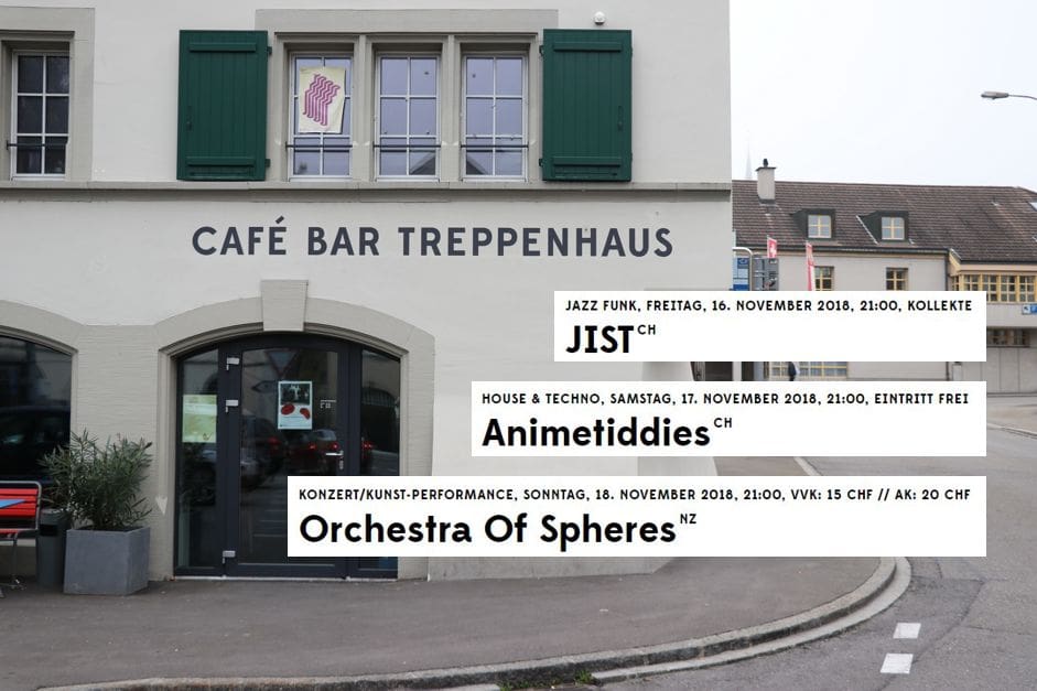 Die Abende zwischen Freitag und Sonntag werden es im Treppenhaus in sich haben. Und am Sonntag gastiert mit ORCHESTRA OF SPHERES sogar eine Band aus Neuseeland bei uns in Rorschach. Details findet man wie immer auf der Treppenhaus-Homepage.
