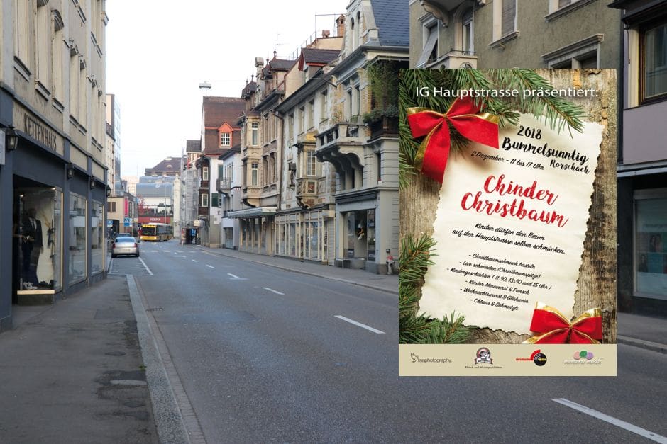 Auch die Verpflegung ist in diesem Teil auf die Kinder zugeschnitten. So wird Stadtmetzger Michi Gehringer eine eigene Kinderwurst kreieren und Erwachsene können bei ihm eine Rorschacher Weihnachtswurst geniessen. Für warme Getränke ist ebenfalls gesorgt (natürlich gibt es auch was für die Erwachsenen) und Lisa Carvalho Lisaphotography wird die Ereignisse rund um diesen speziellen Rorschacher Christbaum im Bild festhalten. Weitere Details zu dieser Aktion werden laufend publiziert. Hinweise findet man auch auf der Homepage der IG Hauptstrasse und ihrer Facebookseite. (pd)