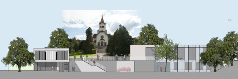 Das Architekturbüro ecolo in Mörschwil arbeitete ein Projekt aus, das die Sichtachse zwischen Kirche und Stadt freilegt, die zuvor durch das «Alte Pfarrhaus» verdeckt wurde. Durch den Neubau entsteht eine Einheit mit schönem Platz, die sich gut in den Kirchenpark integriert. Altlasten, wie die Swisscom-Zentrale, die bis 2053 auf dem Areal der Kirchgemeinde Gastrecht geniesset, wurden berücksichtigt. Das Projekt sieht eine einfachen Holzkonstruktion mit begrüntem Flachdach gegen die Signalstrasse im Kirchenpark vor. Der Abbruch des alten Pfarrhauses nach Inbetriebnahme des Neubaus, erspart ein teures Provisorium.