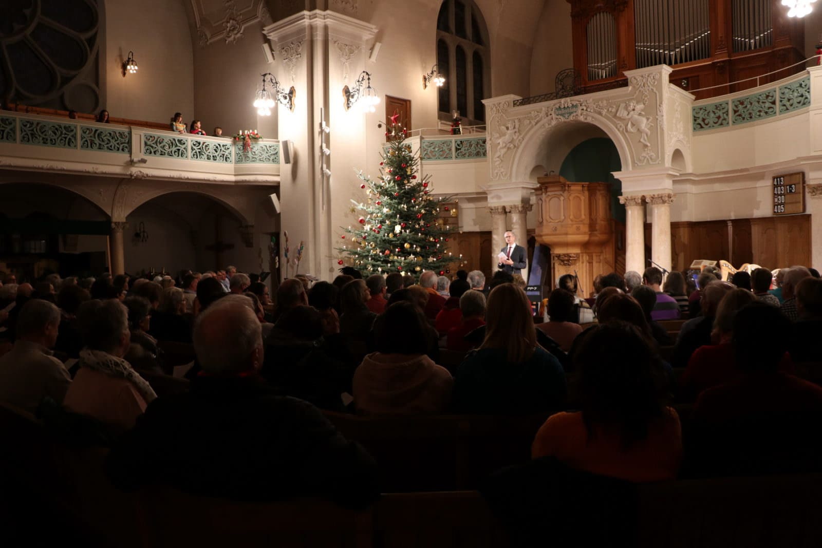 Am gestrigen Benefizkonzert zum neuen Jahr in der Evangelischen Kirche wirkten unter dem Motto „Aus der Region – für die Region“ das Harfentrio (Irina Wagner, Milena Hofmann, Lara Böhm), die Musikgruppe Ševa (Leitung: Robert Vrgoč), der Chor ohne Grenzen (Leitung: Alexa und Emanuel Vogel) und die Cevi-Rorschach mit. Die Textbeiträge stammten von Anna Maria Frei-Braun und Pius F. Helfenstein, sowie von Jugendlichen aus der Begabtenföderung der Primarschule Rorschach. Die Kollekte war für das Solidaritätsnetz Ostschweiz bestimmt und nach dem gut einstündigen Konzert waren die BesucherInnen noch zu einem Punch ins Evangelische Kirchgemeindezentrum eingeladen. Hier einige Impressionen von gestern Abend sowie ein kurzer Videomitschnitt mit dem Chor ohne Grenzen.