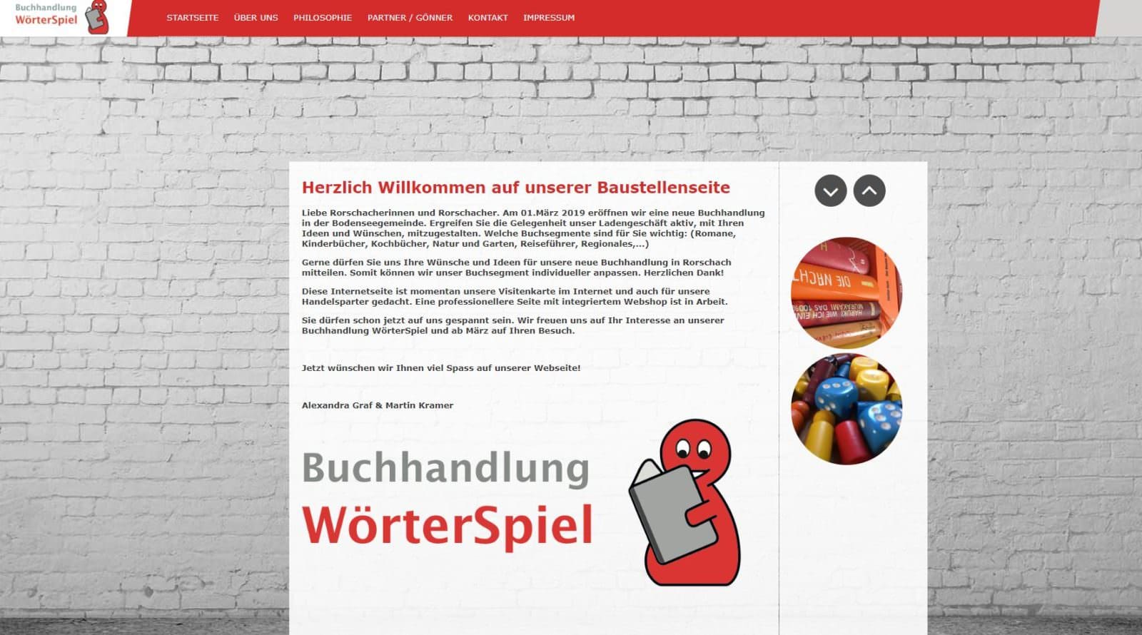 Ein ganz kleines Infoblatt für die Postboten bringt es an den Tag. Rorschach soll nun doch noch eine Buchhandlung bekommen. Auf der Webseite der Buchhandlung Wörterspiel heisst es vielversprechend: „Liebe Rorschacherinnen und Rorschacher. Am 01.März 2019 eröffnen wir eine neue Buchhandlung in der Bodenseegemeinde. Ergreifen Sie die Gelegenheit unser Ladengeschäft aktiv, mit Ihren Ideen und Wünschen, mitzugestalten. Welche Buchsegmente sind für Sie wichtig: (Romane, Kinderbücher, Kochbücher, Natur und Garten, Reiseführer, Regionales …). Gerne dürfen Sie uns Ihre Wünsche und Ideen für unsere neue Buchhandlung in Rorschach mitteilen. Somit können wir unser Buchsegment individueller anpassen. Herzlichen Dank! Diese Internetseite ist momentan unsere Visitenkarte im Internet und auch für unsere Handelsparter gedacht. Eine professionellere Seite mit integriertem Webshop ist in Arbeit. Sie dürfen schon jetzt auf uns gespannt sein. Wir freuen uns auf Ihr Interesse an unserer Buchhandlung WörterSpiel und ab März auf Ihren Besuch. Jetzt wünschen wir Ihnen viel Spass auf unserer Webseite! Alexandra Graf & Martin Kramer.“ Für direkte Anregungen an die beiden InitiantInnen sind ihre Namen hier mit der direkten Mailadresse gekoppelt.