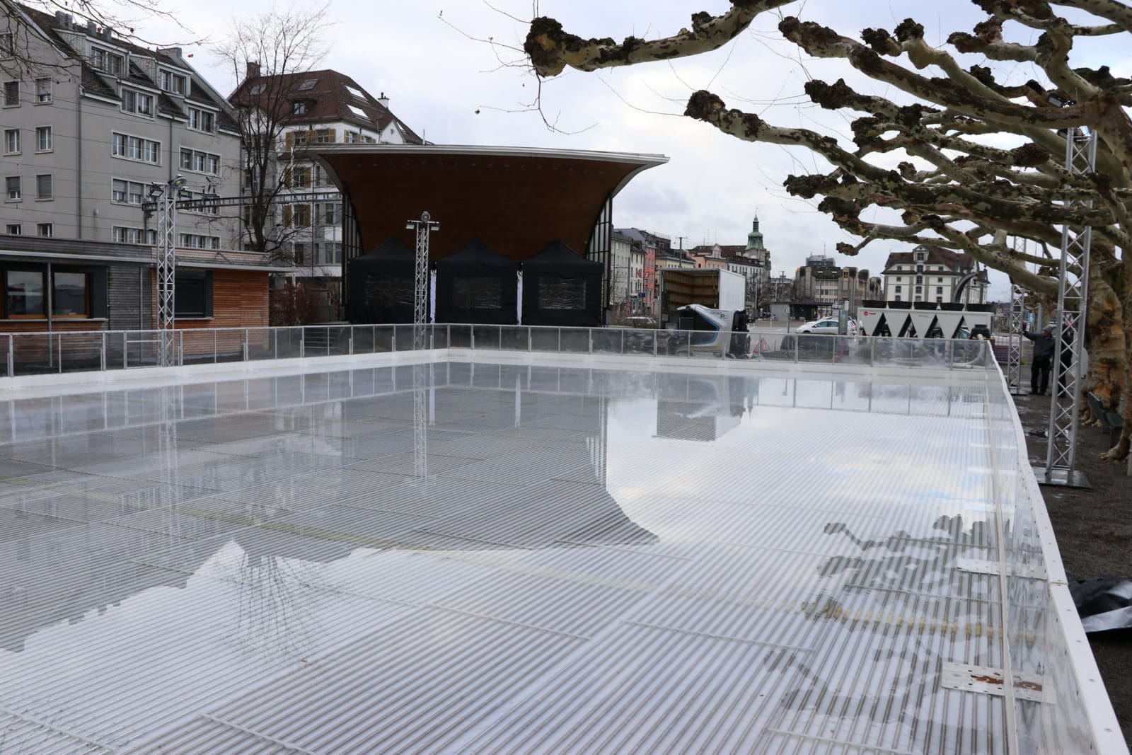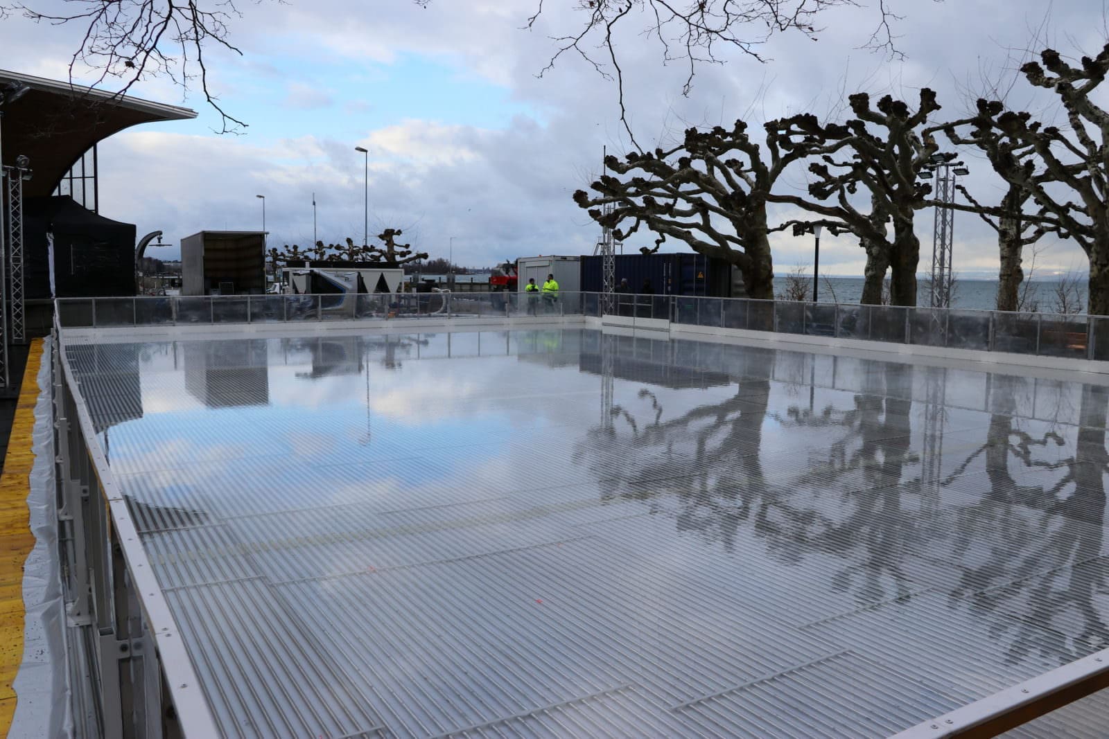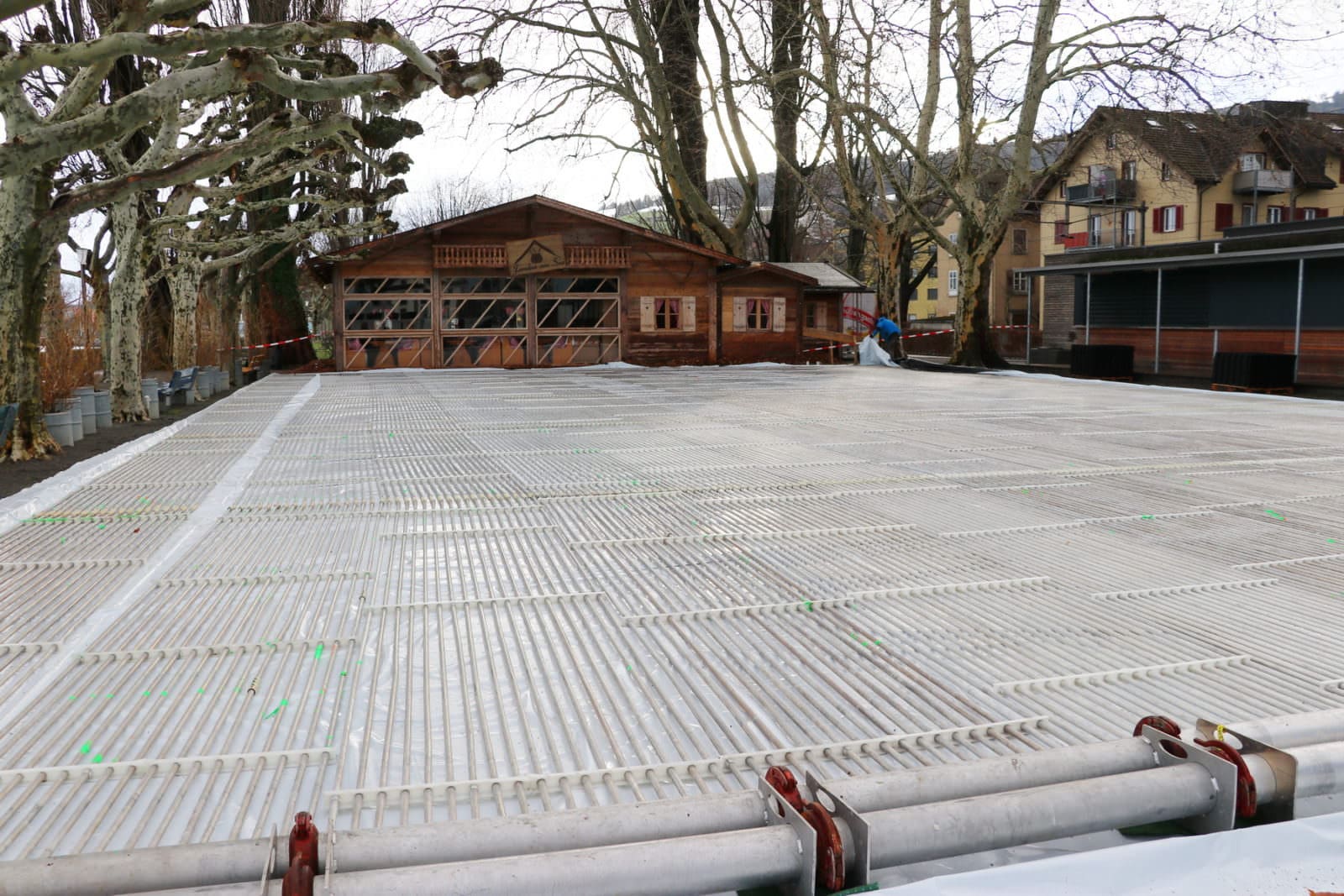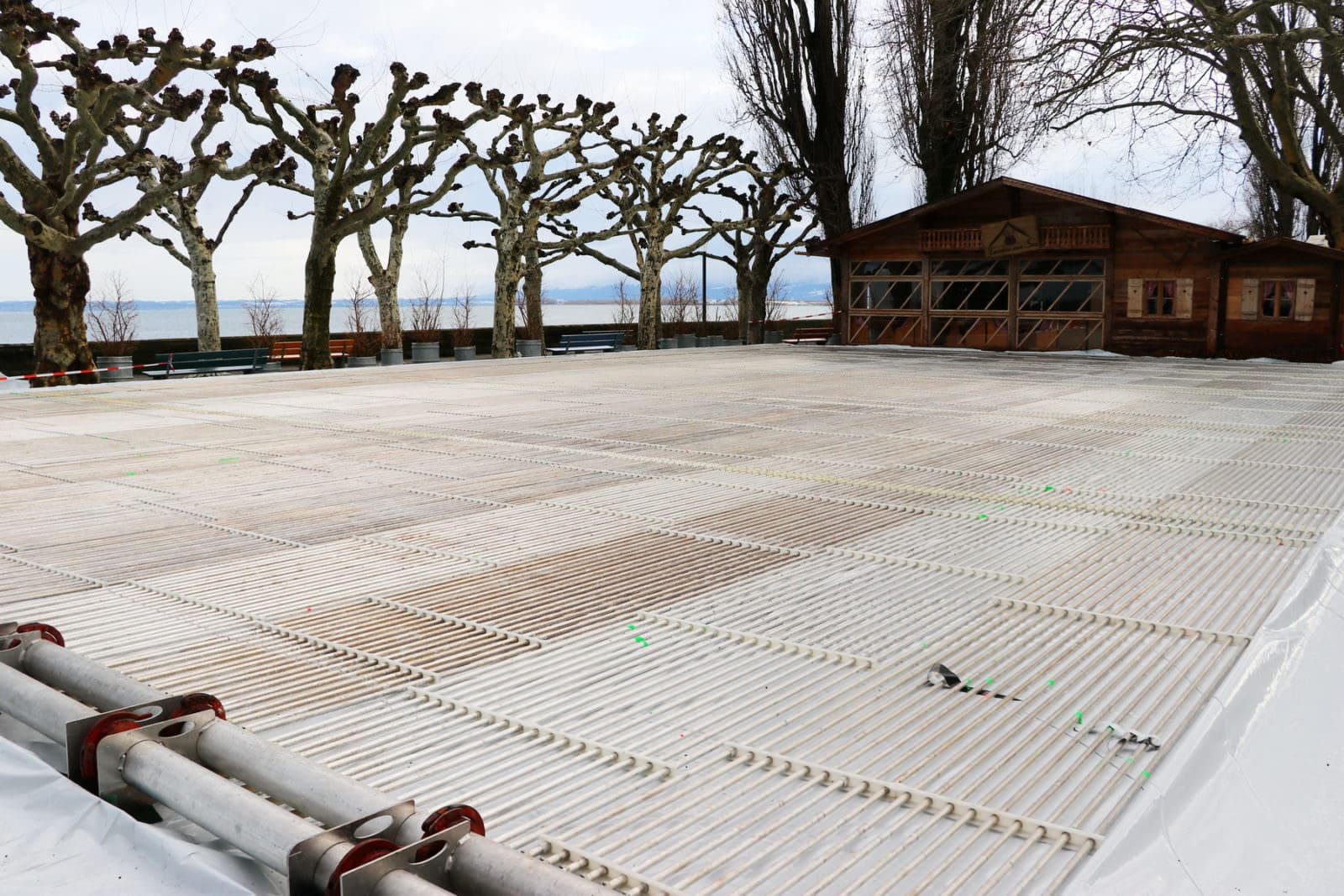 Seit gestern Nachmittag läuft die Eisherstellung, die nun in den nächsten Tagen die Voraussetzungen für eine wunderbare Eisarena beim Pavillon und in unmittelbarer Seenähe schaffen wird. Offiziell nehmen die Eisarena wie auch das Fonduebeizli am kommenden Freitag, 18. Januar, den Betrieb auf. Die Bilder oben stammen von gestern Nachmittag, die unteren vom Vormittag.
