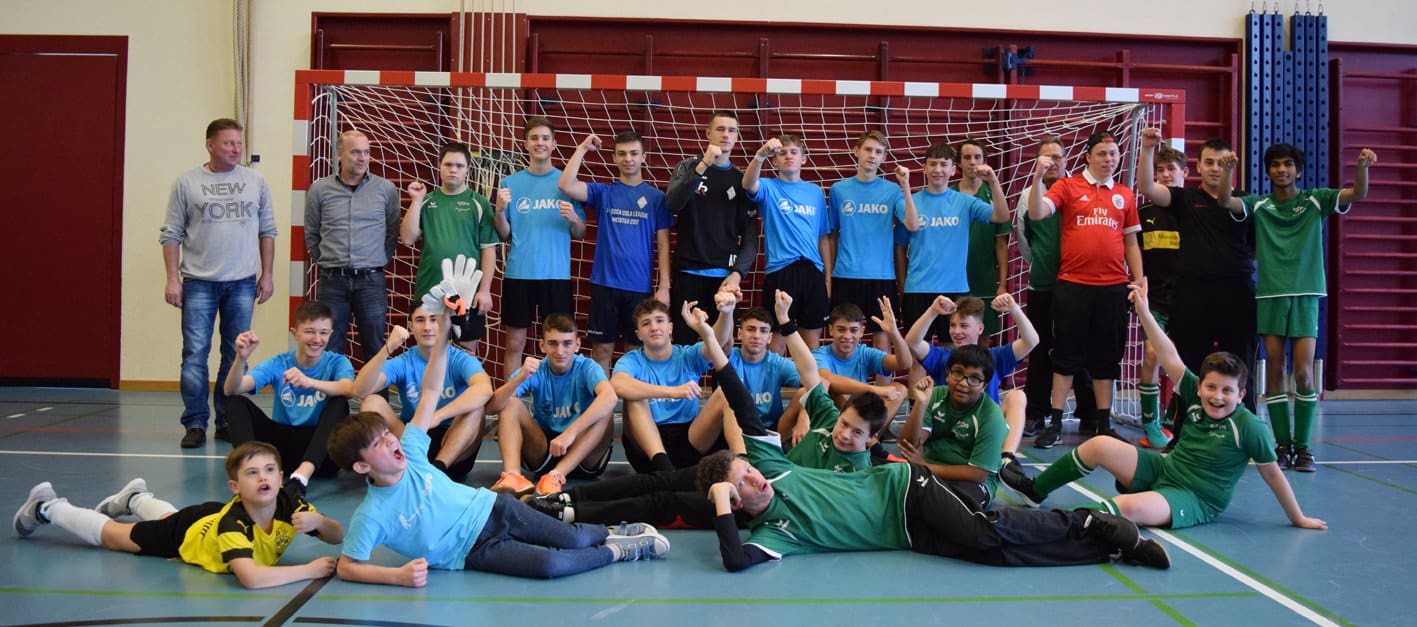 Mit dem internen Hallenturnier des FC Rorschach-Goldach 17 möchte man das Kennenlernen untereinander fördern. Spieler der zwei höchsten Juniorenklassen, die Spieler der Aktivmannschaften und die Senioren spielen in ausgelosten Teams ein Turnier. Im Vorprogramm standen die Spieler der axpo-PluSport-Gruppe Team Wiggenhof – Jugendliche mit Handicap – und B-Junioren des FC RG17, die ebenfalls ausgelost wurden, im Einsatz. Beispielhaft, wie die B-Junioren die Wiggenhof-Kicker im Spiel und neben dem Platz integrierten. Zum Abschluss durften alle vom Team Wiggenhof einen Fussball, gesponsort vom Gymnasium Untere Waid, entgegennehmen. Hier noch Bilder vom Turnier, geschossen von Maja Ruf.