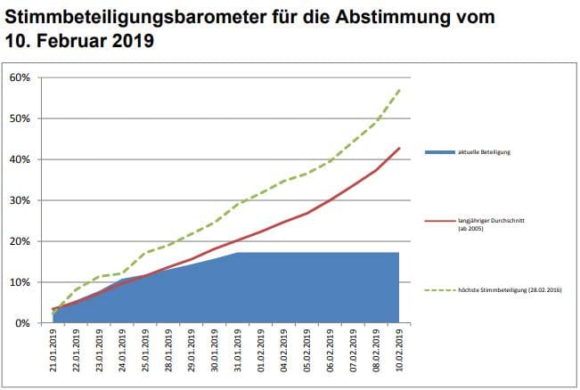 Am 10. Februar ist Abstimmungstag. Die Stimmbeteiligung in Rorschach liegt gemäss Barometer der Stadt aktuell (inkl. bis gestern abgegebene Stimmcouverts) erst bei 17,29 % (rund 3 % unter dem langjährigen Durchschnitt und sogar fast 12 % unter der höchsten Stimmbeteiligung). Das hat vielleicht auch damit zu tun, dass weder die Zersiedelungsinitiative noch die IT-Bildungsoffensive «echte Rorschacher Themen» sind. Und dann hat man ja auch noch bis am 10.2. Zeit …