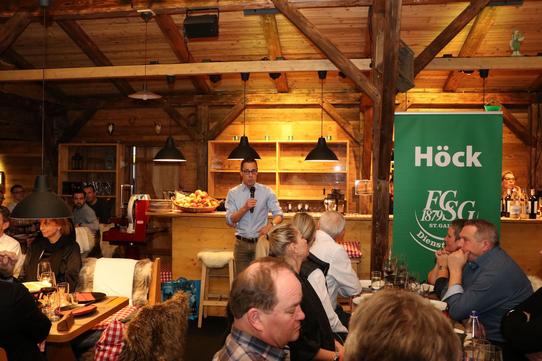 Wie bereits im letzten Jahr hat der Dienstagclub des FC St. Gallen sein Februar-Meeting gestern in unserem Fonduebeizli in Rorschach abgehalten. Dienstagclub-Präsident Martin Schönenberger durfte weit über 100 Mitglieder begrüssen und freute sich, mit Verwaltungsratspräsident Matthias Hüppi, Sportchef Alain Sutter und Trainer Peter Zeidler die zentralen Personen des Vereins dabei zu haben. Das war gestern ein ganz gemütlicher Abend unter Fussballfreunden mit vielen News. Diese werden nicht einmal hier auf dem Rorschacher Echo veröffentlicht, denn es könnte ja sein, dass auch der FCZ das Rorschacher Echo liest … Und genau gegen diesen FCZ startet heute Abend der FCSG mit dem Heimspiel in die Rückrunde. Aber Bilder von gestern Abend gibt es hier. Voilà.